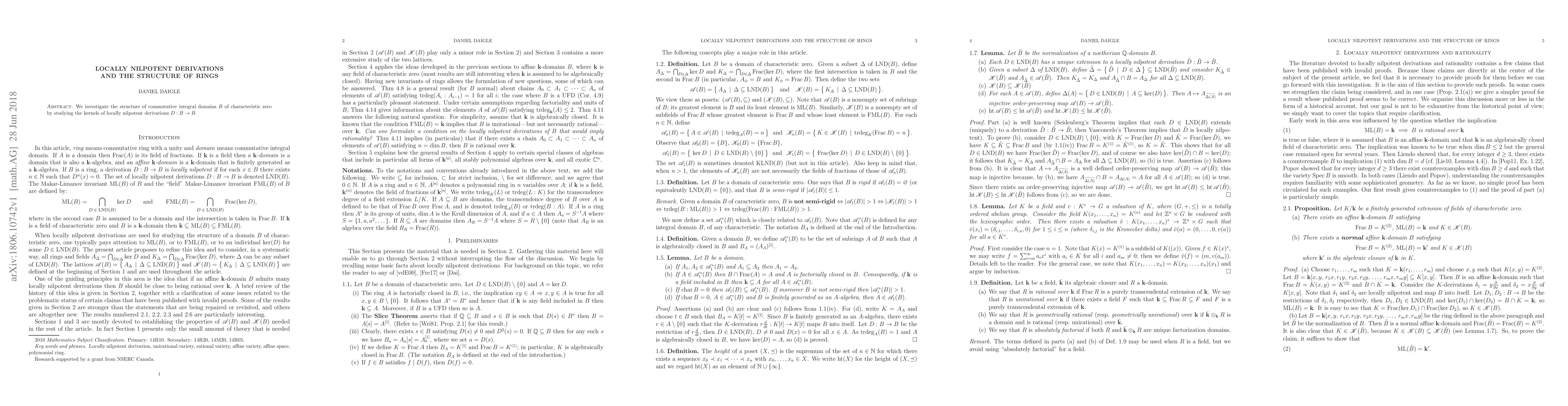 We investigate the structure of commutative integral domains $B$ of characteristic zero by studying the kernels of locally nilpotent derivations $D : B \to B$.