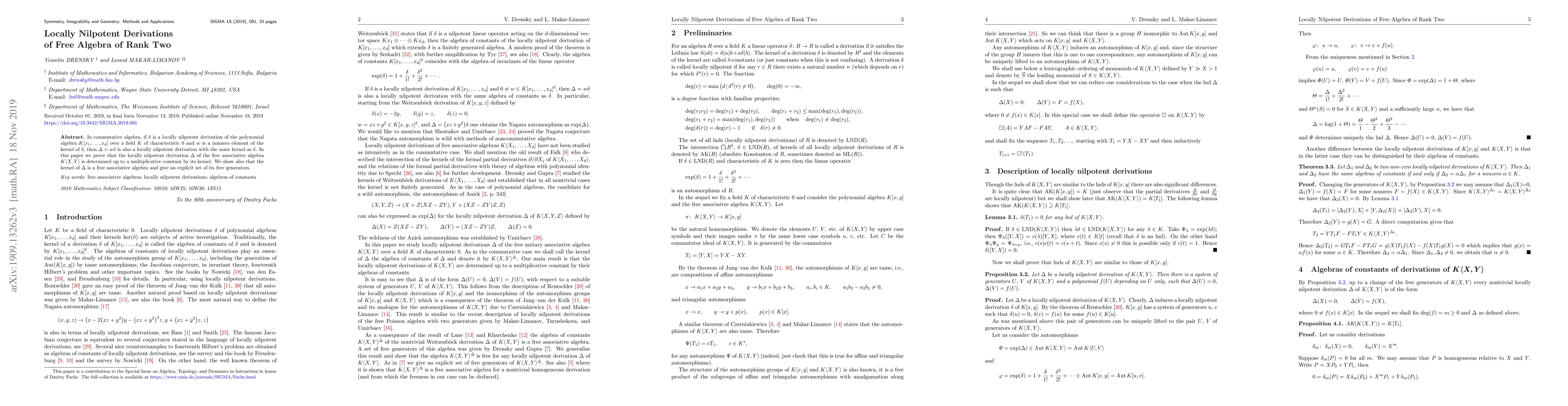In commutative algebra, if $\delta$ is a locally nilpotent derivation of the polynomial algebra $K[x_1,\ldots,x_d]$ over a field $K$ of characteristic 0 and $w$ is a nonzero element of the kernel of $\delta$, then $\Delta=w\delta$ is also a locally nilpotent derivation with the same kernel as $\delta$. In this paper we prove that the locally nilpotent derivation $\Delta$ of the free associative algebra $K\langle X,Y\rangle$ is determined up to a multiplicative constant by its kernel. We show also that the kernel of $\Delta$ is a free associative algebra and give an explicit set of its free generators.