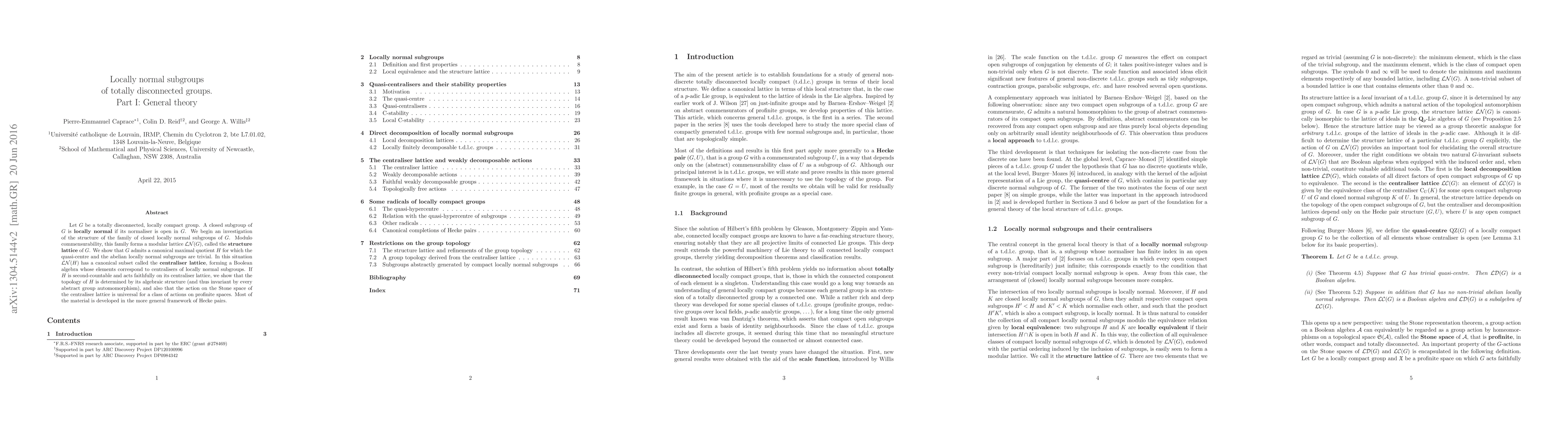The paper introduces a framework for analyzing locally normal subgroups using the structure and centraliser lattices, enriched by the theory of Hecke pairs.