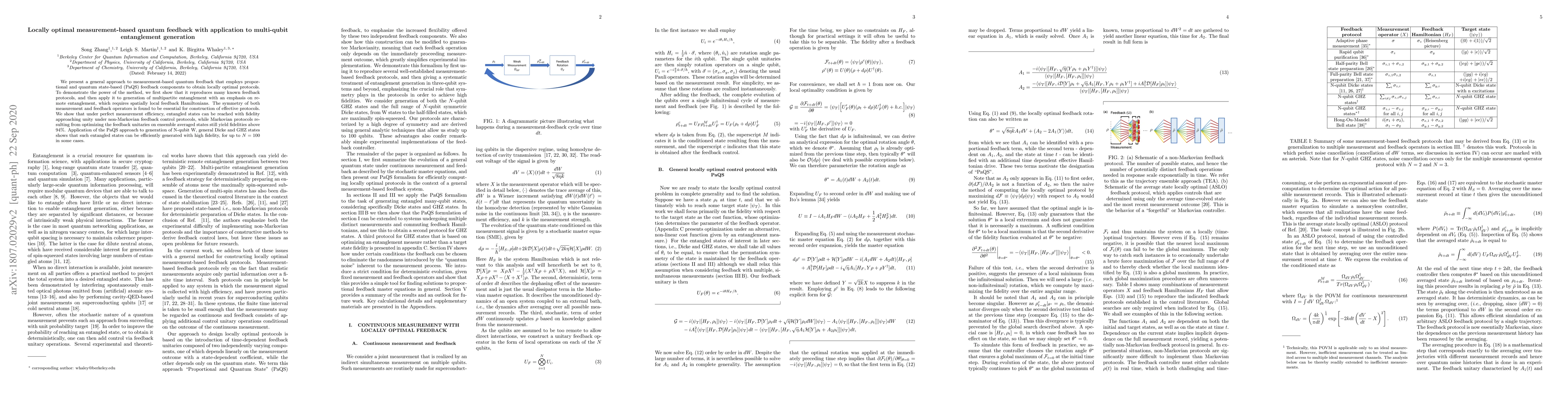 We present a general approach to measurement-based quantum feedback that employs proportional and quantum state-based (PaQS) feedback components to obtain locally optimal protocols. To demonstrate the power of the method, we first show that it reproduces many known feedback protocols, and then apply it to generation of multipartite entanglement with an emphasis on remote entanglement, which requires spatially local feedback Hamiltonians. The symmetry of both measurement and feedback operators is found to be essential for construction of effective protocols. We show that under perfect measurement efficiency, entangled states can be reached with fidelity approaching unity under non-Markovian feedback control protocols, while Markovian protocols resulting from optimizing the feedback unitaries on ensemble averaged states still yield fidelities above 94%. Application of the PaQS approach to generation of N-qubit W, general Dicke and GHZ states shows that such entangled states can be efficiently generated with high fidelity, for up to N = 100 in some cases.