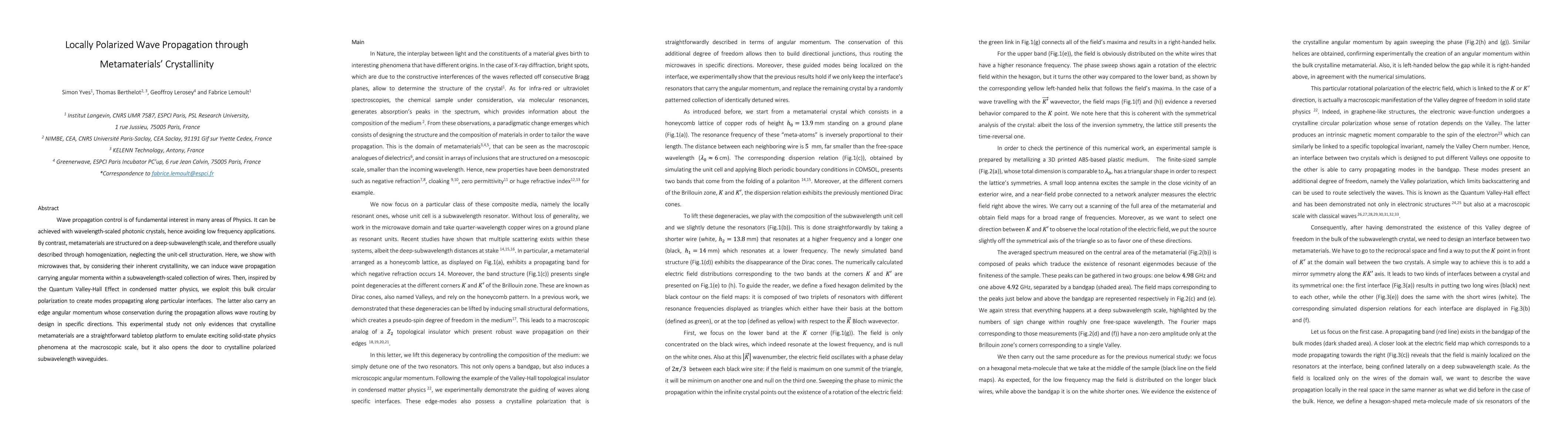 Wave propagation control is of fundamental interest in many areas of Physics. It can be achieved with wavelength-scaled photonic crystals, hence avoiding low frequency applications. By contrast, metamaterials are structured on a deep-subwavelength scale, and therefore usually described through homogenization, neglecting the unit-cell structuration. Here, we show with microwaves that, by considering their inherent crystallinity, we can induce wave propagation carrying angular momenta within a subwavelength-scaled collection of wires. Then, inspired by the Quantum Valley-Hall Effect in condensed matter physics, we exploit this bulk circular polarization to create modes propagating along particular interfaces. The latter also carry an edge angular momentum whose conservation during the propagation allows wave routing by design in specific directions. This experimental study not only evidences that crystalline metamaterials are a straightforward tabletop platform to emulate exciting solid-state physics phenomena at the macroscopic scale, but it also opens the door to crystalline polarized subwavelength waveguides.