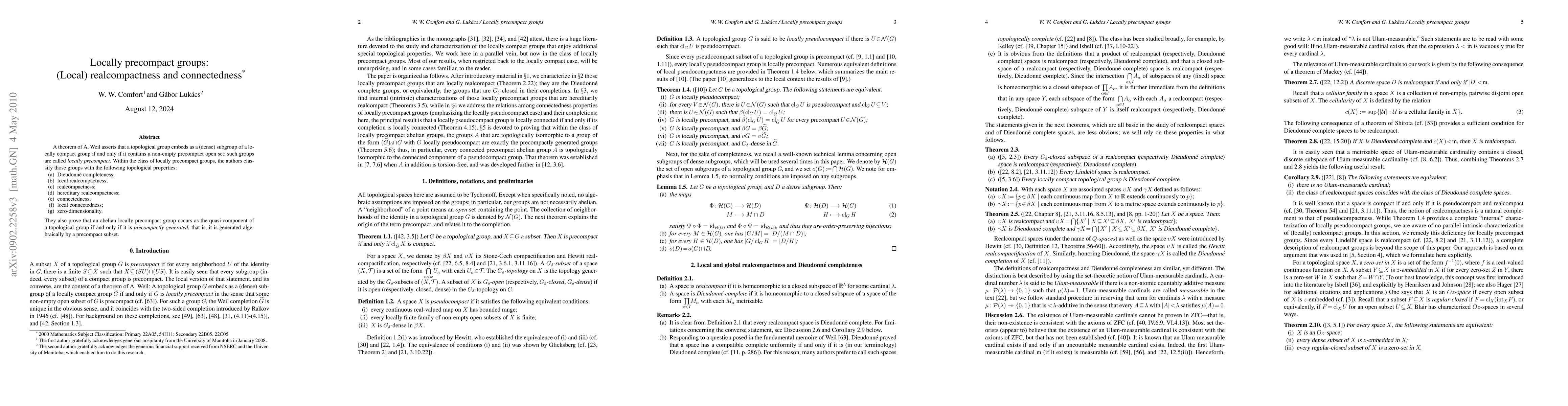 This paper classifies locally precompact groups based on various topological properties including realcompactness, connectedness, and zero-dimensionality. It also establishes conditions under which an abelian locally precompact group is the quasi-component of a topological group, specifically when it is precompactly generated.