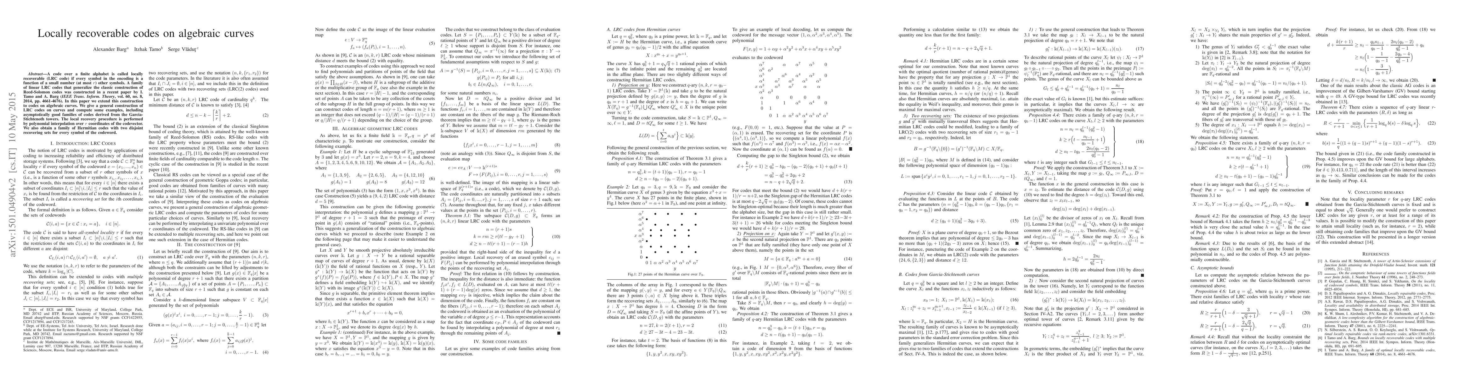 This paper extends the construction of locally recoverable codes (LRC) to algebraic curves, generalizing linear LRC codes from Reed-Solomon codes. It introduces a method for local recovery via polynomial interpolation and presents asymptotically good families of codes derived from Garcia-Stichtenoth towers.