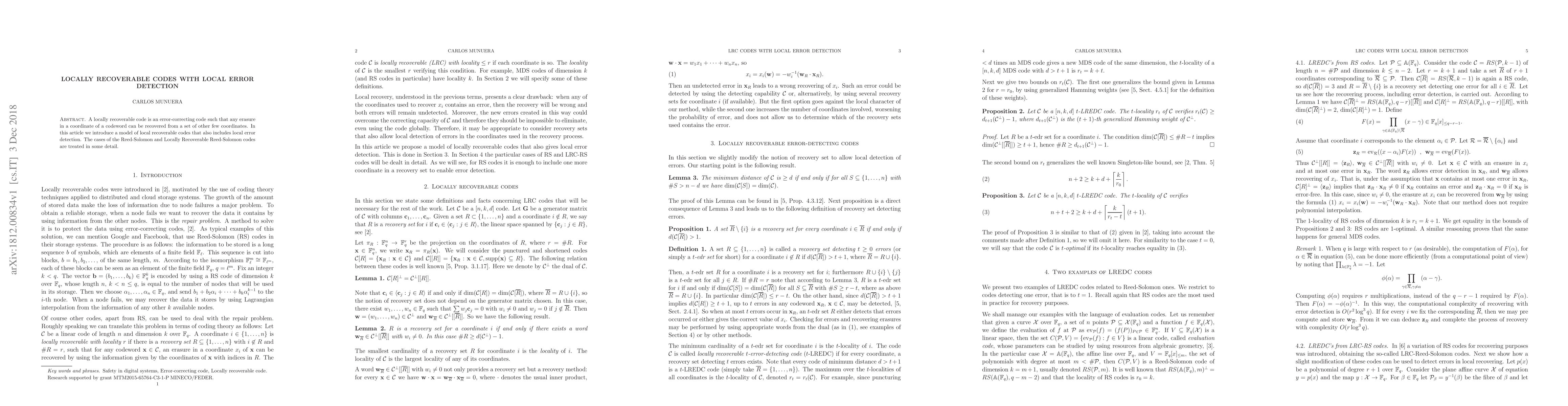 A locally recoverable code is an error-correcting code such that any erasure in a coordinate of a codeword can be recovered from a set of other few coordinates. In this article we introduce a model of local recoverable codes that also includes local error detection. The cases of the Reed-Solomon and Locally Recoverable Reed-Solomon codes are treated in some detail.