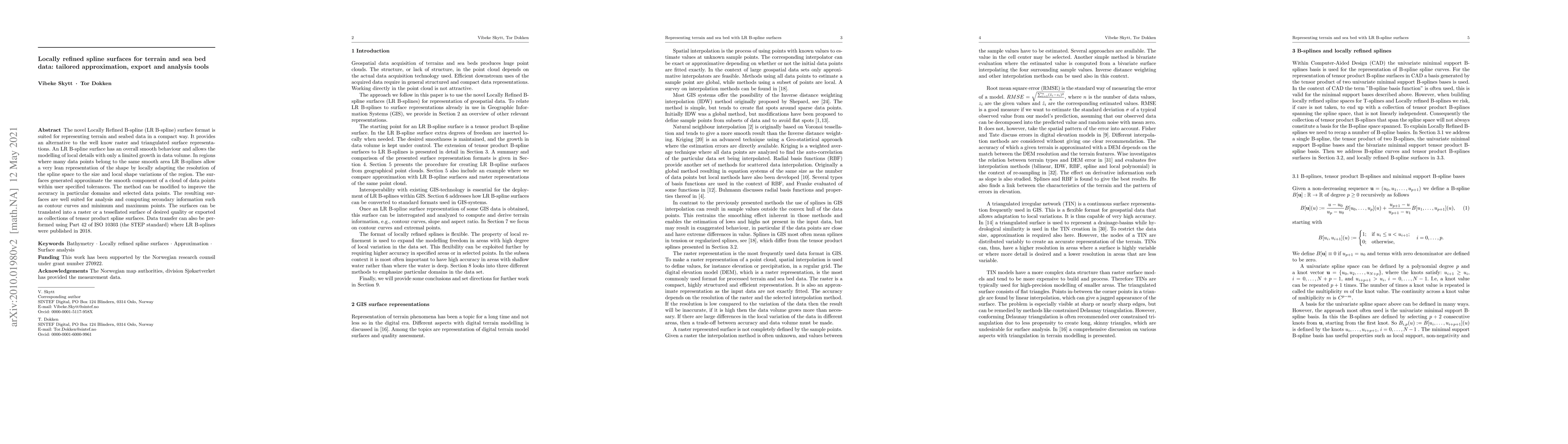 This paper introduces Locally Refined B-spline (LR B-spline) surfaces as a compact and efficient alternative for representing terrain and seabed data. These surfaces adapt resolution locally to data variations, enabling lean representation and smooth approximation of data points within specified tolerances.