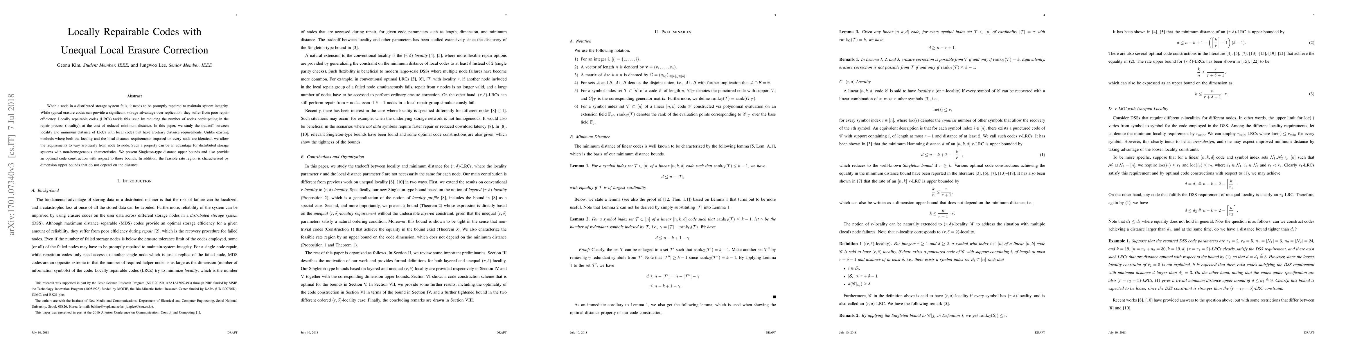 When a node in a distributed storage system fails, it needs to be promptly repaired to maintain system integrity. While typical erasure codes can provide a significant storage advantage over replication, they suffer from poor repair efficiency. Locally repairable codes (LRCs) tackle this issue by reducing the number of nodes participating in the repair process (locality), at the cost of reduced minimum distance. In this paper, we study the tradeoff between locality and minimum distance of LRCs with local codes that have arbitrary distance requirements. Unlike existing methods where both the locality and the local distance requirements imposed on every node are identical, we allow the requirements to vary arbitrarily from node to node. Such a property can be an advantage for distributed storage systems with non-homogeneous characteristics. We present Singleton-type distance upper bounds and also provide an optimal code construction with respect to these bounds. In addition, the feasible rate region is characterized by dimension upper bounds that do not depend on the distance.