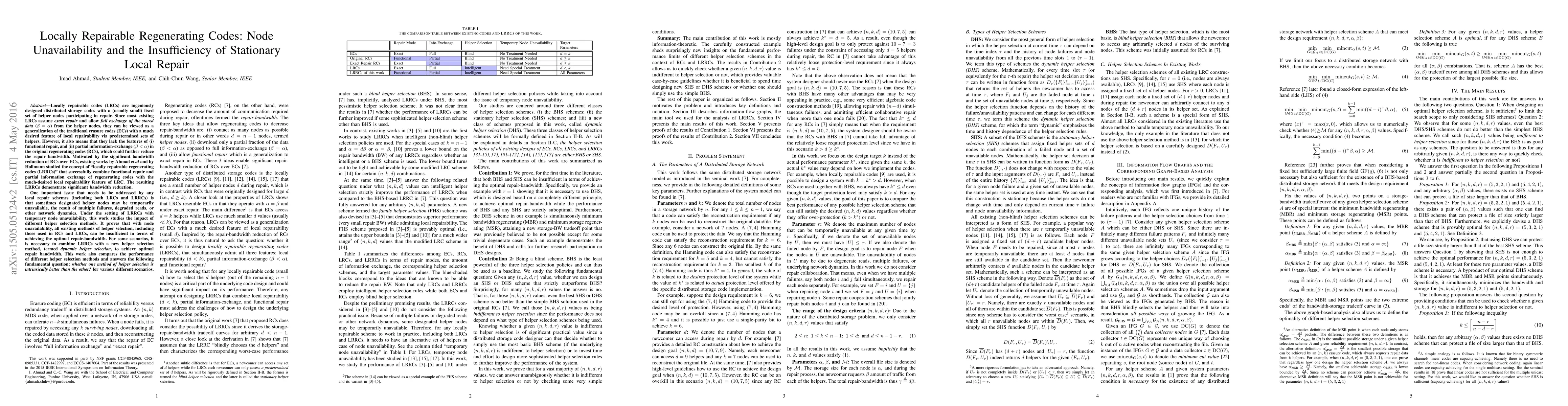 Locally Repairable Regenerating Codes study reveals that existing helper selection methods for node unavailability can be insufficient, highlighting the need for a new dynamic helper selection method to achieve optimal repair bandwidth.