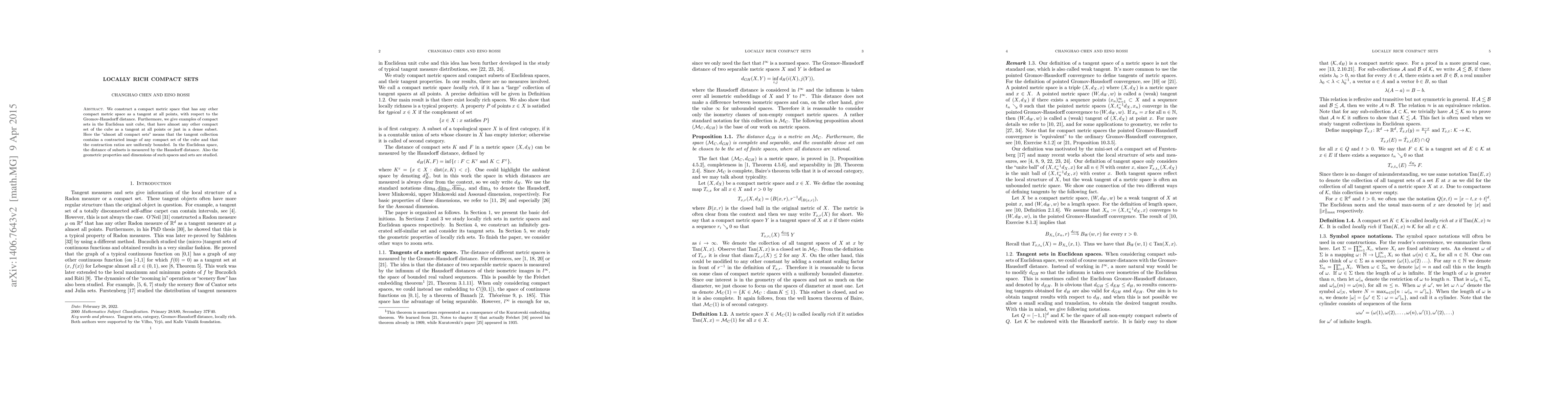 This paper constructs a locally rich compact metric space that can serve as a tangent to any other compact metric space at all points, according to the Gromov-Hausdorff distance. It also provides examples of compact sets within the Euclidean unit cube that have almost any other compact set as a tangent, with uniformly bounded contraction ratios.