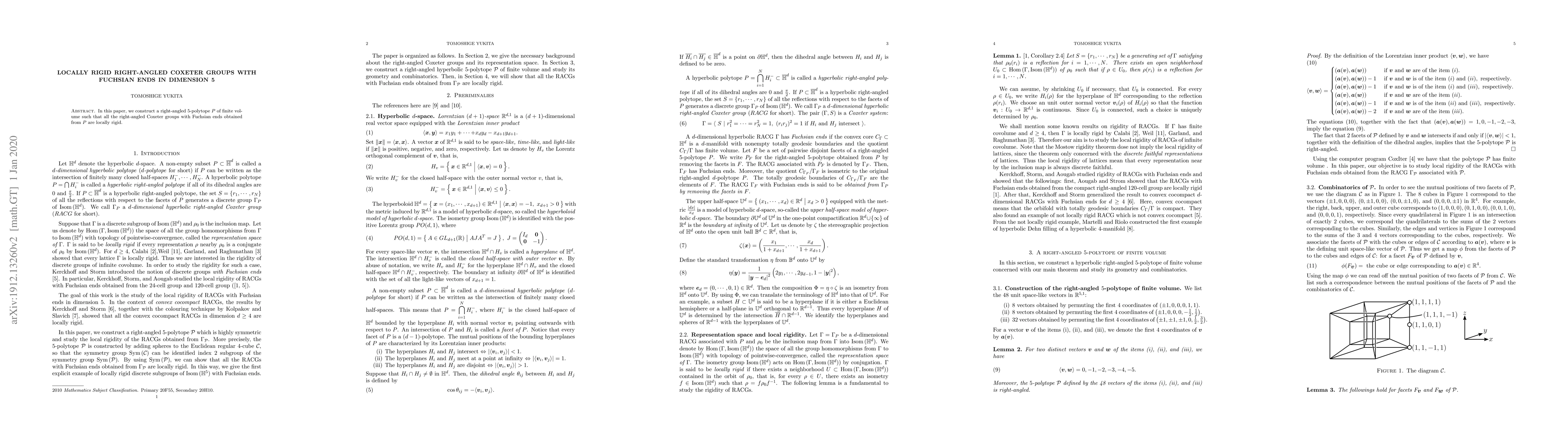 Summary: This paper constructs a finite-volume right-angled 5-polytope P, demonstrating that all derived right-angled Coxeter groups with Fuchsian ends are locally rigid. The result highlights the local rigidity property in higher-dimensional geometry.