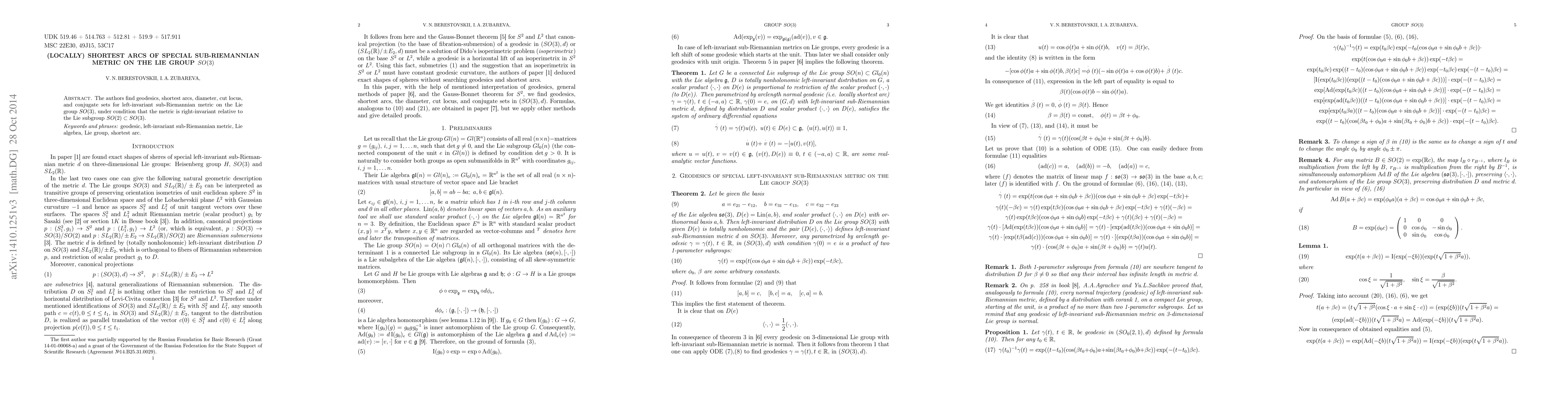 The study identifies geodesics and shortest paths in a left-invariant sub-Riemannian metric on the Lie group SO(3), considering the right-invariance relative to the subgroup SO(2) and explores associated geometric properties like diameter, cut locus, and conjugate sets.