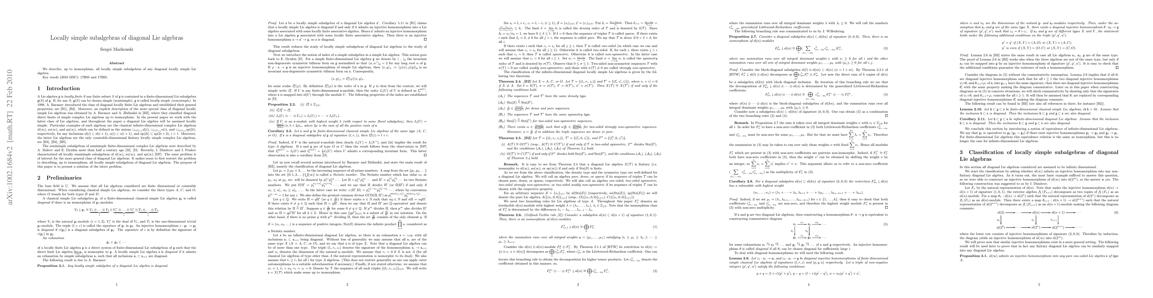 This research identifies and classifies, up to isomorphism, all locally simple subalgebras of any diagonal locally simple Lie algebra, providing a comprehensive understanding of their structure.