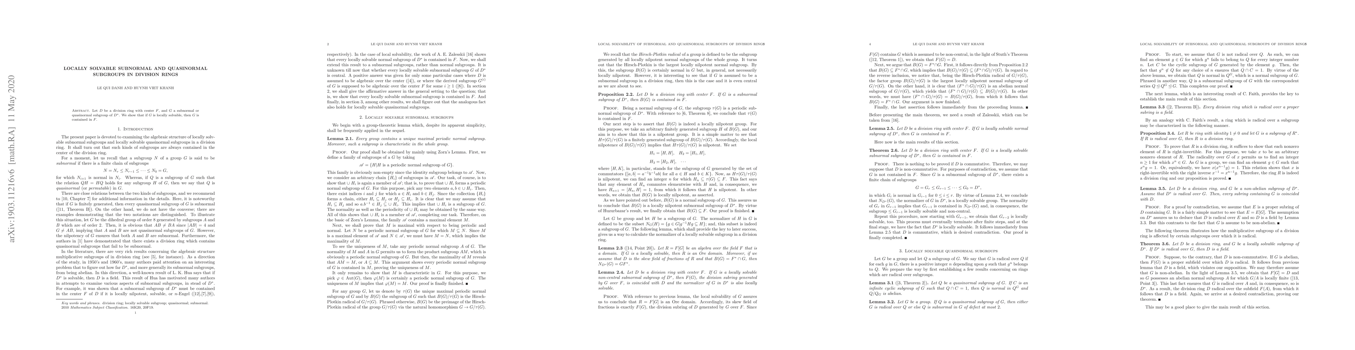 Summary: This paper demonstrates that any locally solvable subnormal or quasinormal subgroup $G$ of the multiplicative group $D^*$ of a division ring $D$ with center $F$ is entirely contained within the center $F$.