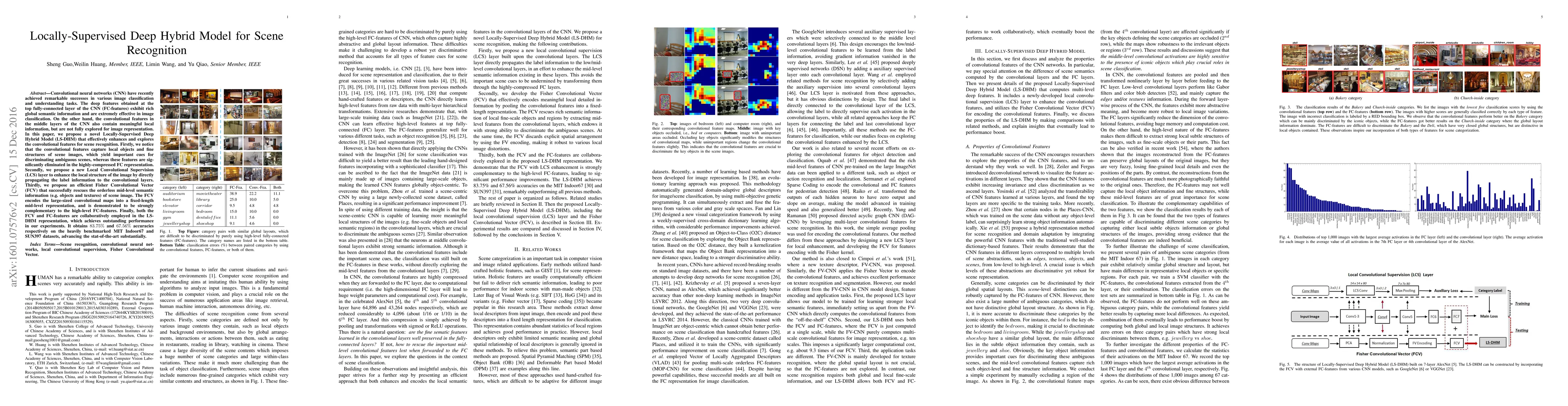 This paper proposes a Locally-Supervised Deep Hybrid Model (LS-DHM) that combines convolutional and fully-connected features from CNNs to enhance scene recognition. It introduces a Local Convolutional Supervision layer and a Fisher Convolutional Vector for better local feature extraction, achieving superior performance on MIT Indoor67 and SUN397 datasets.