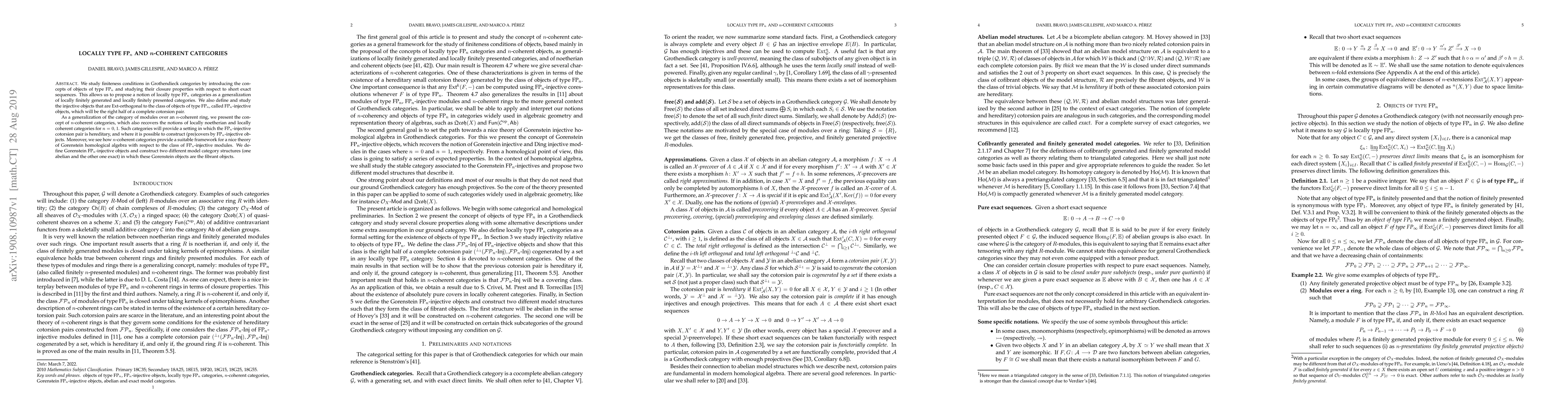 This paper introduces the concept of locally type $\text{FP}_n$ and $n$-coherent categories, extending the notions of locally finitely generated and presented categories. It defines $\text{FP}_n$-injective objects and explores their role in a complete cotorsion pair, alongside the construction of Gorenstein $\text{FP}_n$-injective objects within a model category framework.