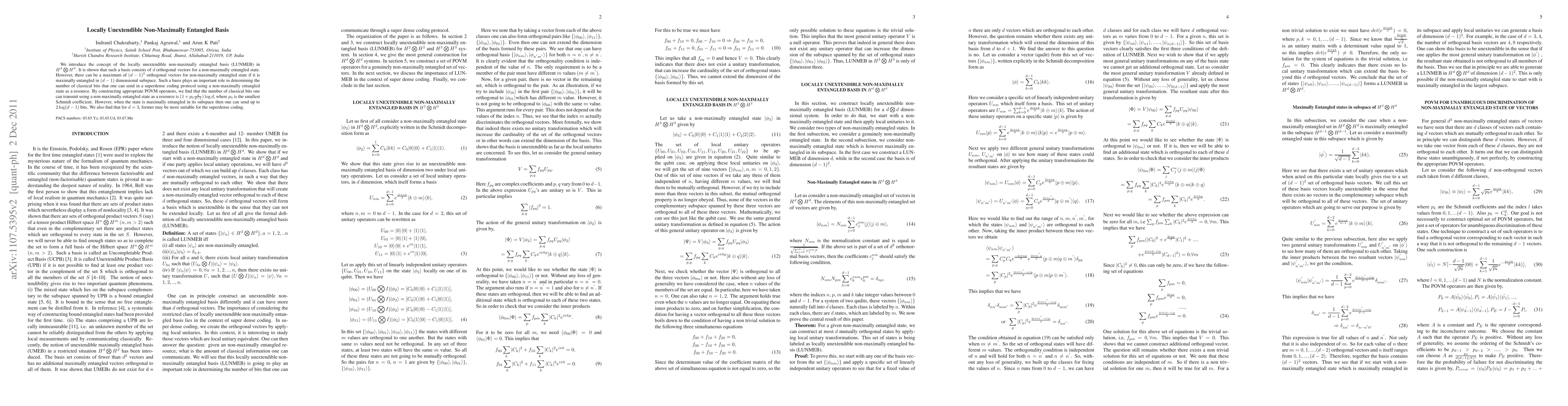 This paper introduces the locally unextendible non-maximally entangled basis (LUNMEB) in $H^d \bigotimes H^d$, demonstrating its role in superdense coding protocols. It shows that the number of classical bits transmitted depends on the smallest Schmidt coefficient, with different optimal strategies for non-maximally and maximally entangled states.
