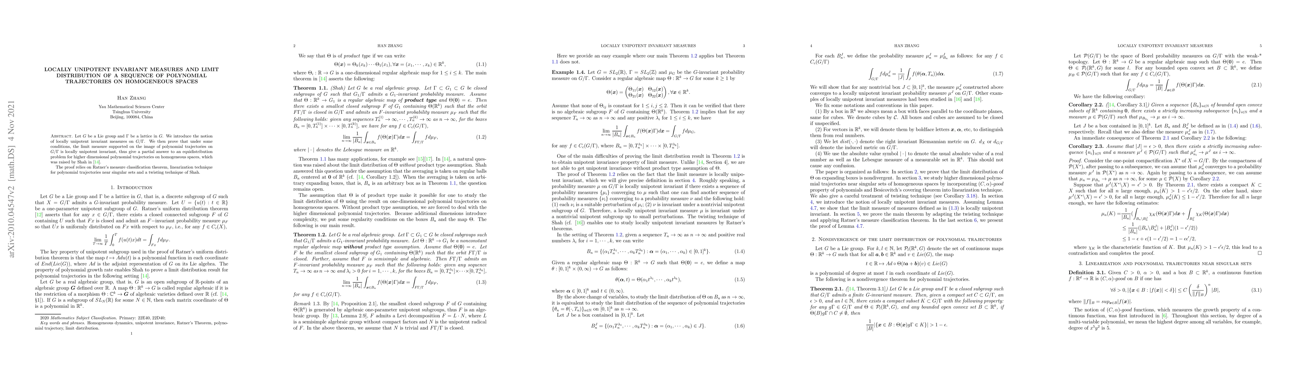 This paper introduces locally unipotent invariant measures on homogeneous spaces and proves that under certain conditions, the limit measure of polynomial trajectories on these spaces is locally unipotent invariant, addressing an equidistribution problem posed by Shah. The proof utilizes Ratner's measure classification theorem, linearization techniques, and Shah's twisting method.