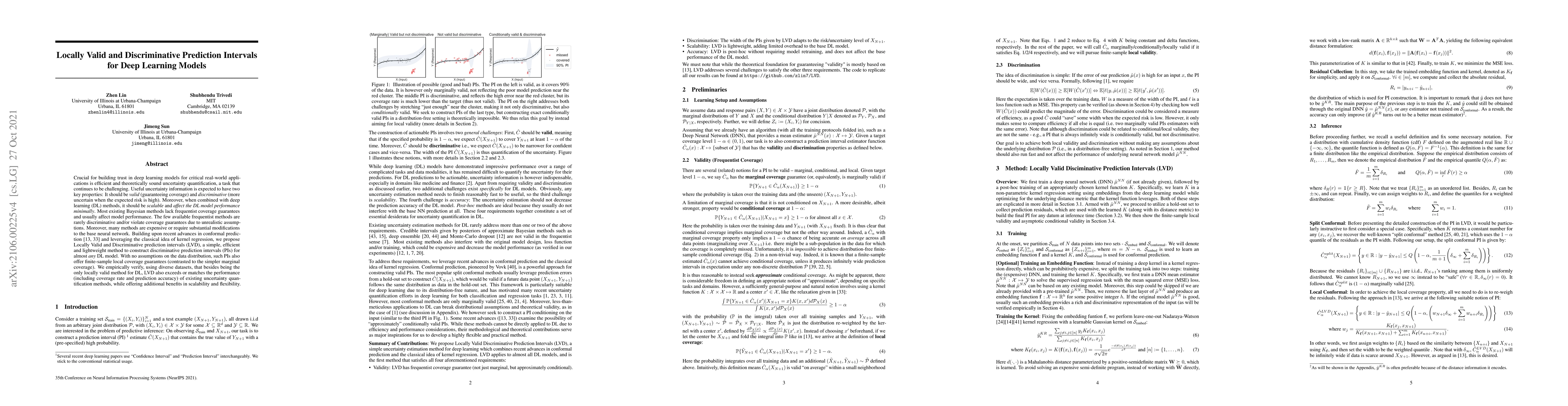 This paper proposes Locally Valid and Discriminative (LVD) prediction intervals for deep learning models, offering valid coverage guarantees and discriminative uncertainty quantification without significantly impacting model performance. LVD leverages conformal prediction and kernel regression, providing scalable and flexible uncertainty estimates for diverse datasets.