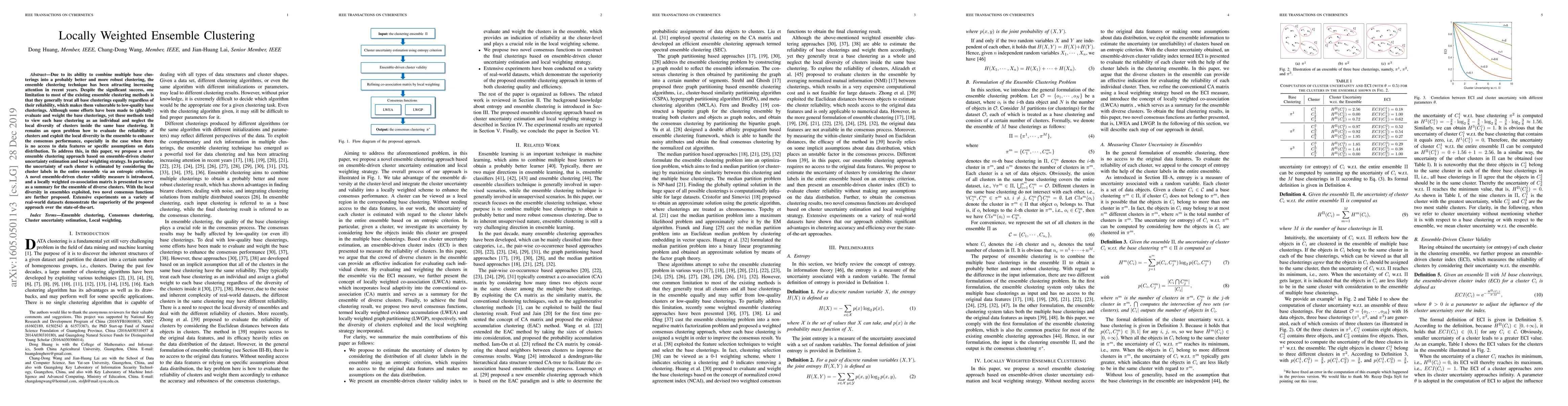 This paper proposes a novel ensemble clustering method that leverages local weighting and cluster uncertainty estimation to improve clustering robustness. It introduces an ensemble-driven cluster validity measure and locally weighted co-association matrix, demonstrating superior performance over state-of-the-art methods on various real-world datasets.