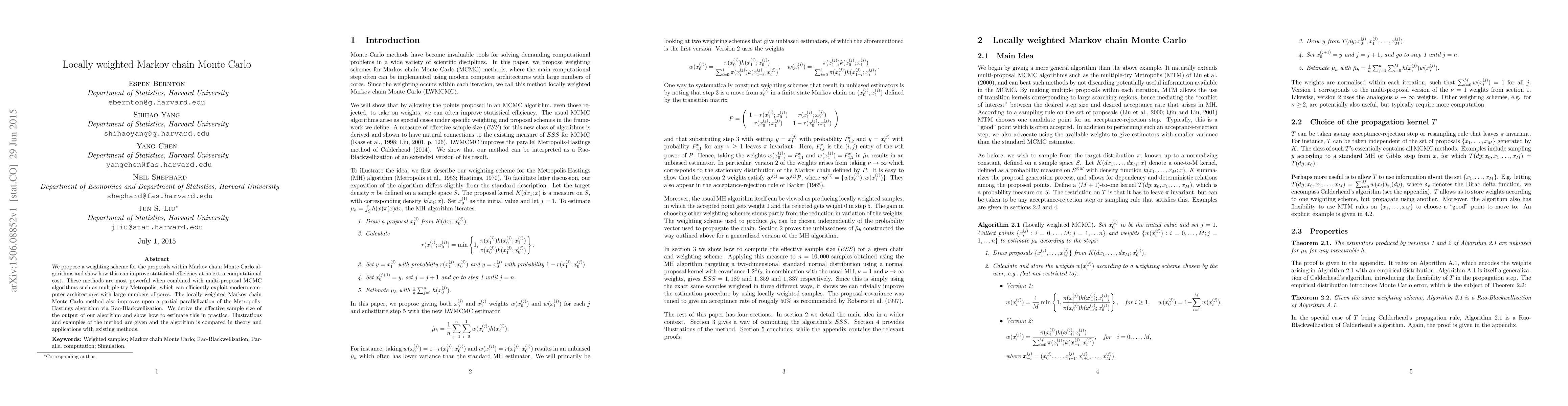 This paper introduces a locally weighted Markov chain Monte Carlo (MCMC) approach that enhances statistical efficiency without additional computational costs. The method leverages multi-proposal MCMC algorithms to maximize parallel processing capabilities and improves upon the Rao-Blackwellization-based partial parallelization of the Metropolis-Hastings algorithm.