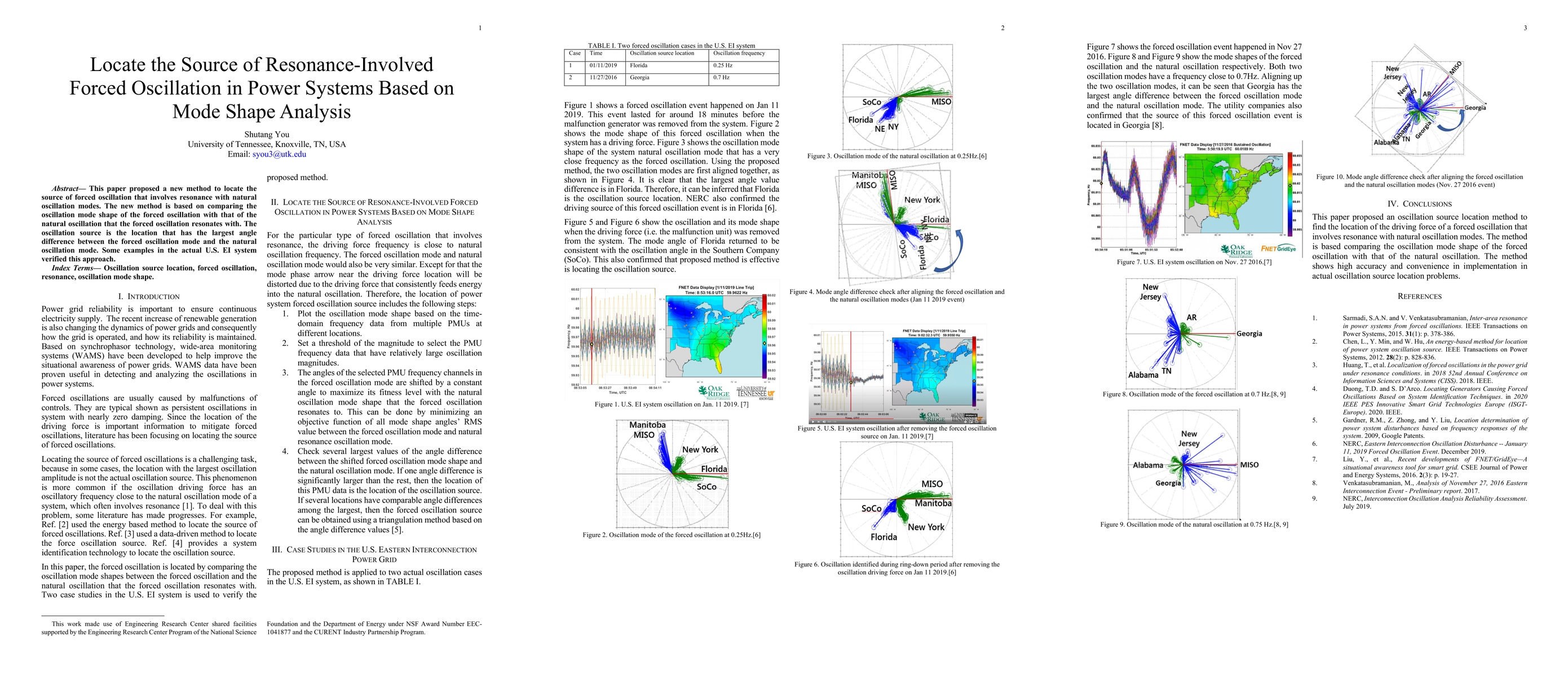 This paper introduces a novel method for identifying the source of resonance-involved forced oscillation in power systems by analyzing mode shapes. The method identifies the driving force location by comparing the angle difference between forced oscillation and natural oscillation modes, with verified examples in the U.S. electric grid.