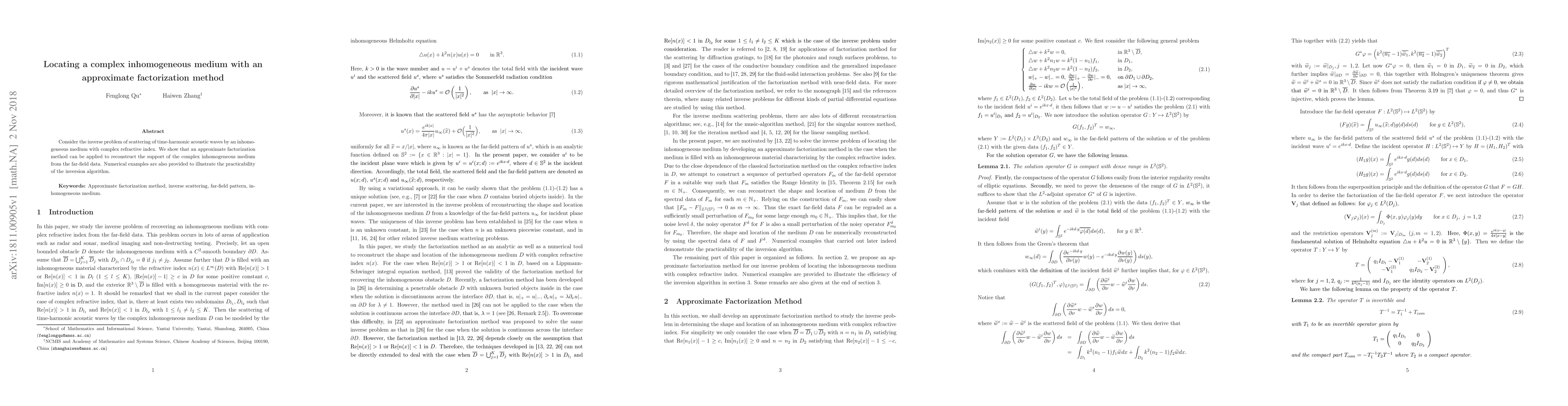 Consider the inverse problem of scattering of time-harmonic acoustic waves by an inhomogeneous medium with complex refractive index. We show that an approximate factorization method can be applied to reconstruct the support of the complex inhomogeneous medium from the far-field data. Numerical examples are also provided to illustrate the practicability of the inversion algorithm.