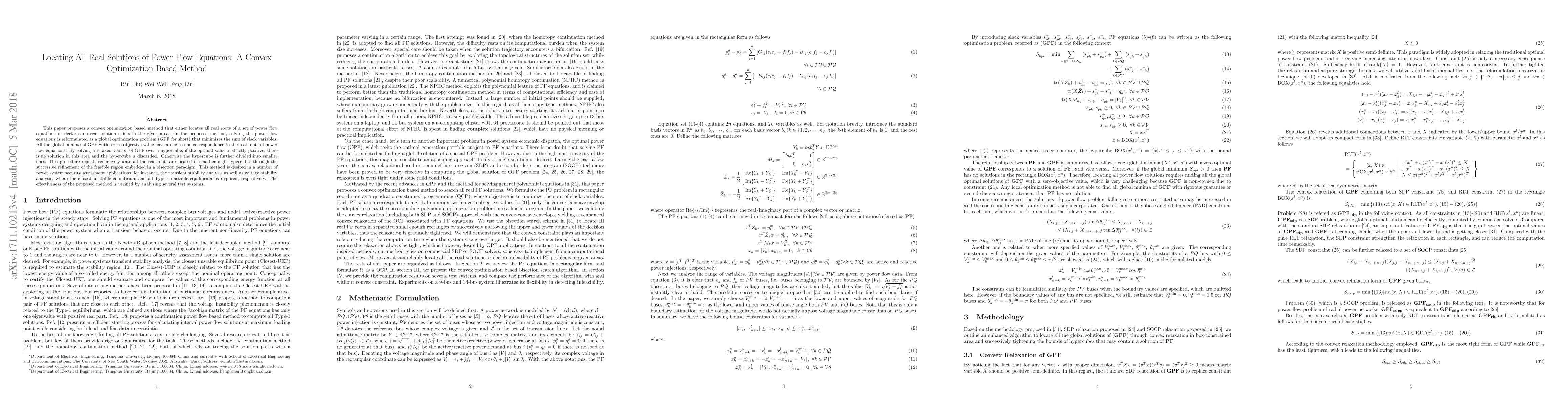 This paper introduces a convex optimization method to locate all real solutions of power flow equations by reformulating the problem as a global optimization task, iteratively refining feasible regions until all real roots are found. The method is useful for power system security assessments, including transient and voltage stability analyses.