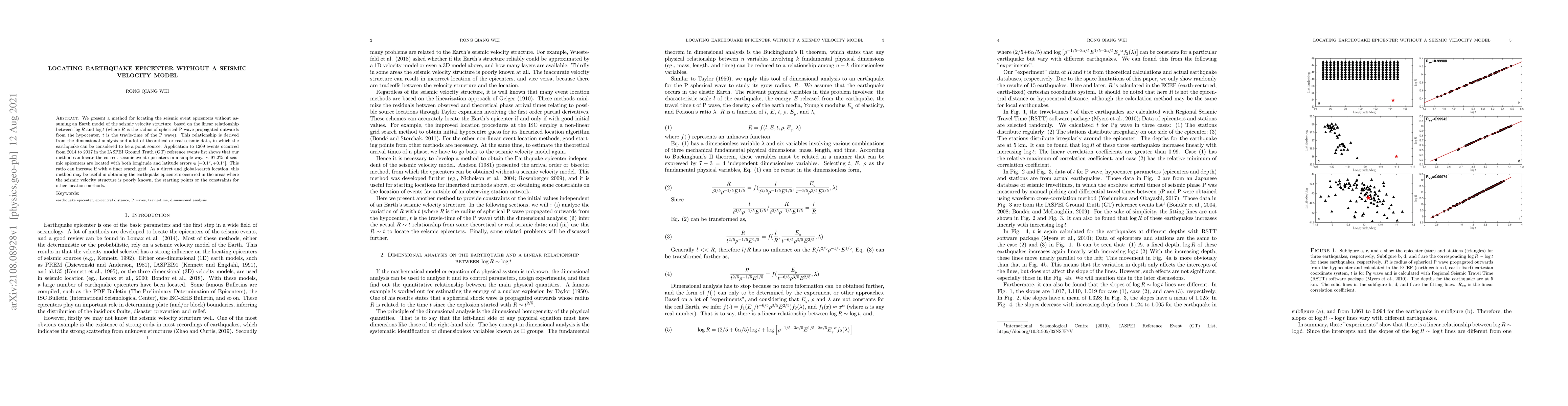 Researchers developed a method to locate earthquake epicenters without assuming a specific Earth model, using a linear relationship between wave speed and travel time. The method accurately located 97.2% of seismic epicenters with minimal errors.