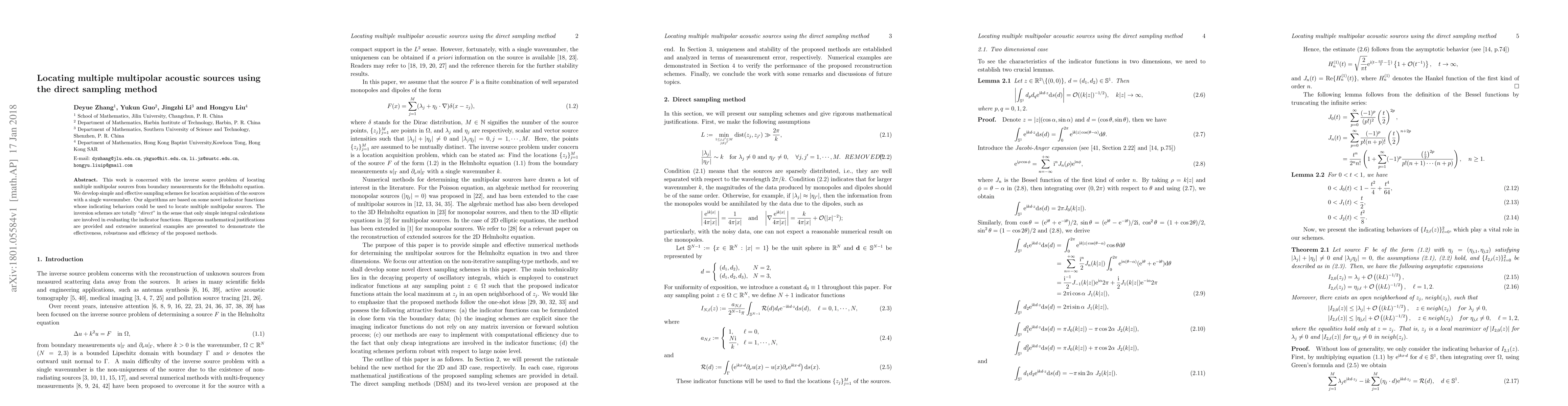 This work is concerned with the inverse source problem of locating multiple multipolar sources from boundary measurements for the Helmholtz equation. We develop simple and effective sampling schemes for location acquisition of the sources with a single wavenumber. Our algorithms are based on some novel indicator functions whose indicating behaviors could be used to locate multiple multipolar sources. The inversion schemes are totally "direct" in the sense that only simple integral calculations are involved in evaluating the indicator functions. Rigorous mathematical justifications are provided and extensive numerical examples are presented to demonstrate the effectiveness, robustness and efficiency of the proposed methods.