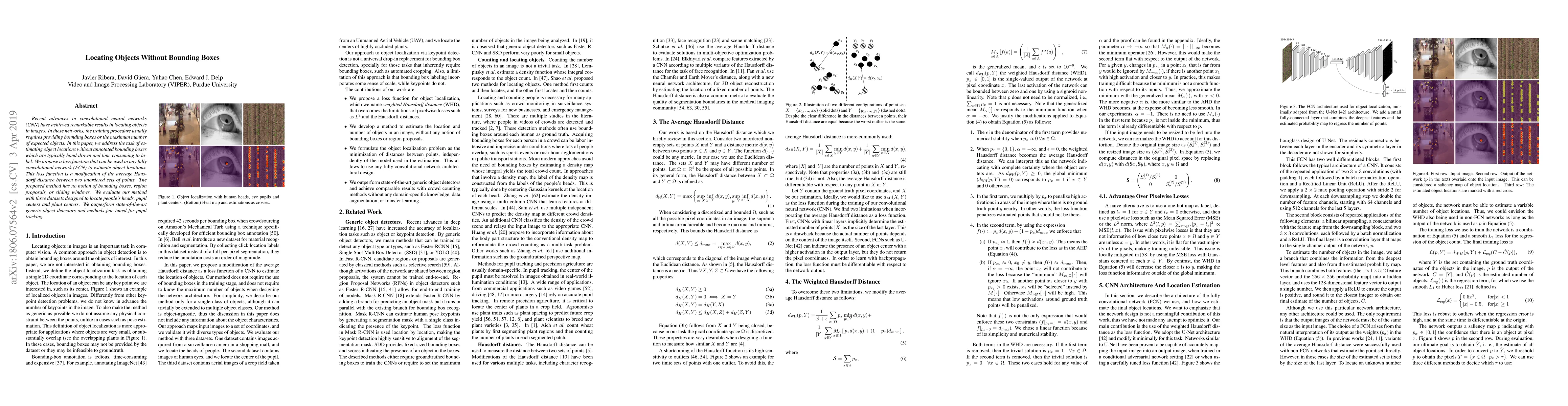 This paper proposes a novel loss function for fully convolutional networks to estimate object locations without requiring annotated bounding boxes, using a modified Hausdorff distance. The method outperforms existing detectors on datasets for locating people's heads, pupil centers, and plant centers.