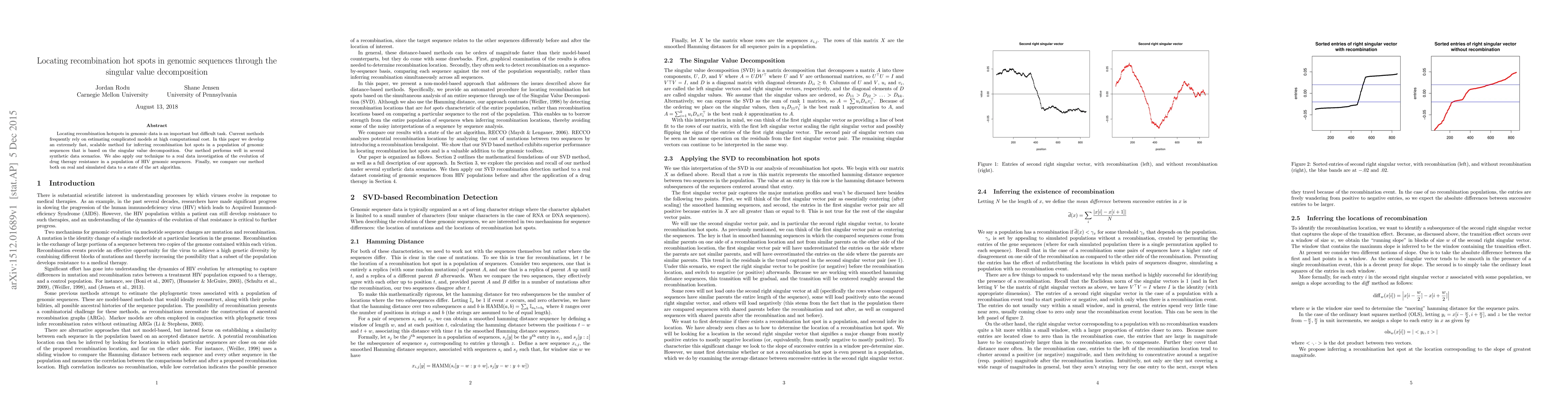 Locating recombination hotspots in genomic data is an important but difficult task. Current methods frequently rely on estimating complicated models at high computational cost. In this paper we develop an extremely fast, scalable method for inferring recombination hot spots in a population of genomic sequences that is based on the singular value decomposition. Our method performs well in several synthetic data scenarios. We also apply our technique to a real data investigation of the evolution of drug therapy resistance in a population of HIV genomic sequences. Finally, we compare our method both on real and simulated data to a state of the art algorithm.