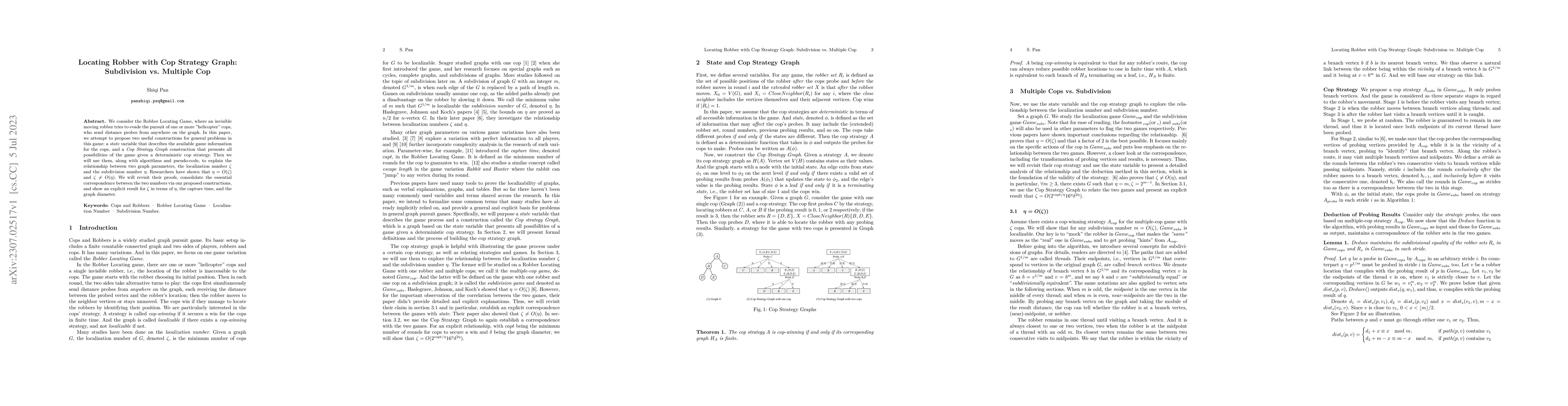 This paper explores the Robber Locating Game, proposing constructions for the Cop Strategy Graph and a state variable to describe game information. It investigates the relationship between the localization number and the subdivision number, confirming a linear relationship for the latter but demonstrating a non-linear one in the other direction.