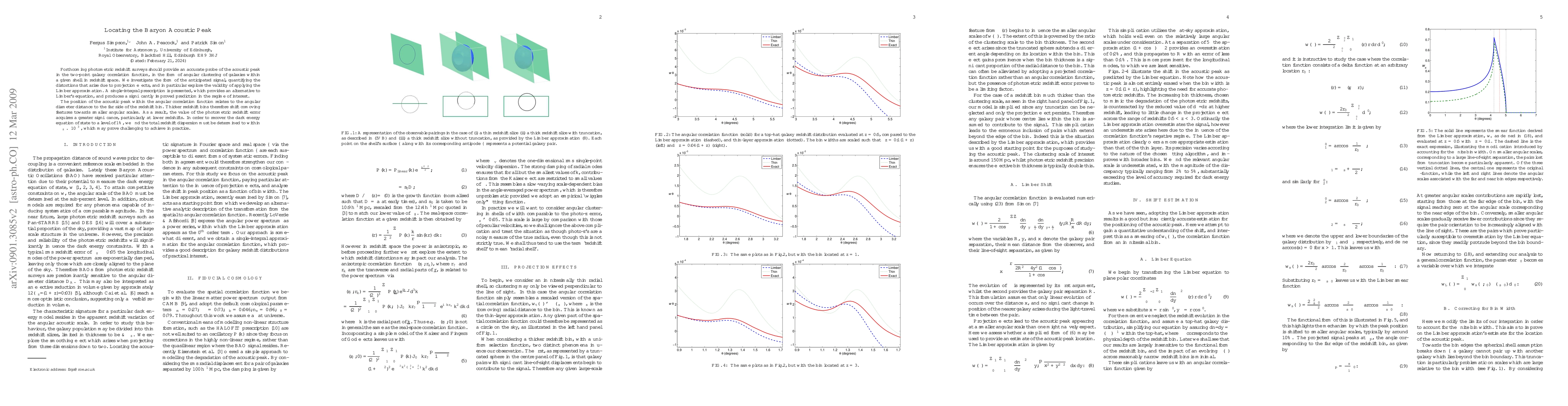 Forthcoming photometric redshift surveys should provide an accurate probe of the acoustic peak in the two-point galaxy correlation function, in the form of angular clustering of galaxies within a given shell in redshift space. We investigate the form of the anticipated signal, quantifying the distortions that arise due to projection effects, and in particular explore the validity of applying the Limber approximation. A single-integral prescription is presented, which provides an alternative to Limber's equation, and produces a significantly improved prediction in the regime of interest. The position of the acoustic peak within the angular correlation function relates to the angular diameter distance to the far side of the redshift bin. Thicker redshift bins therefore shift comoving features towards smaller angular scales. As a result, the value of the photometric redshift error acquires a greater significance, particularly at lower redshifts. In order to recover the dark energy equation of state to a level of 1%, we find the total redshift dispersion must be determined to within \Delta \sigma_z ~ 10^-3, which may prove challenging to achieve in practice.