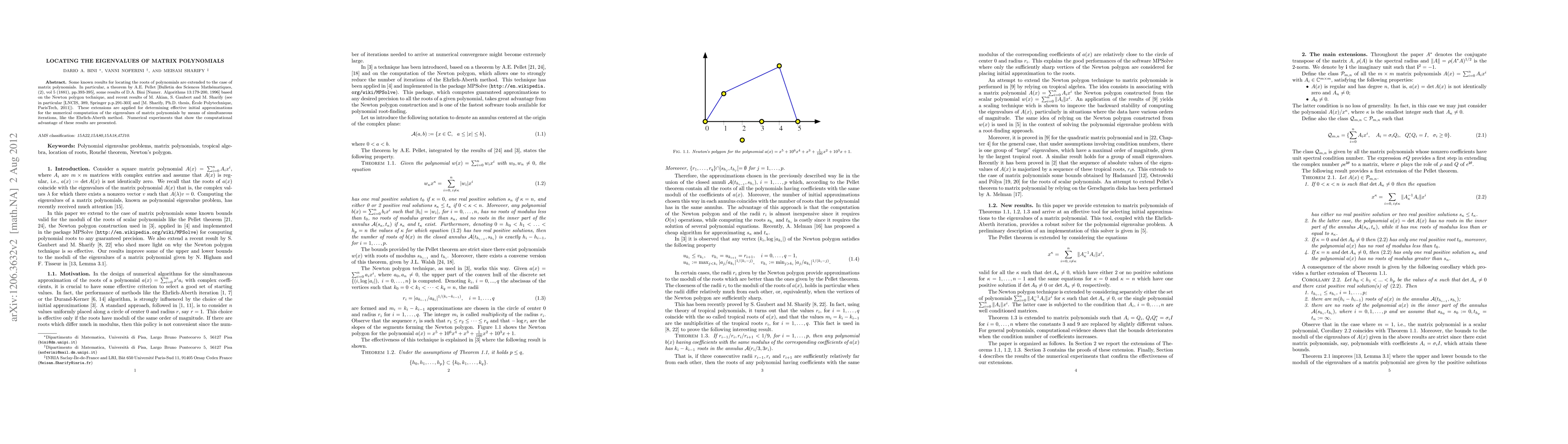 This paper extends classical polynomial root-finding techniques to matrix polynomials, incorporating results from Pellet, Bini, and Akian et al. to provide effective initial approximations for numerical eigenvalue computations using simultaneous iteration methods, demonstrating computational benefits through experiments.