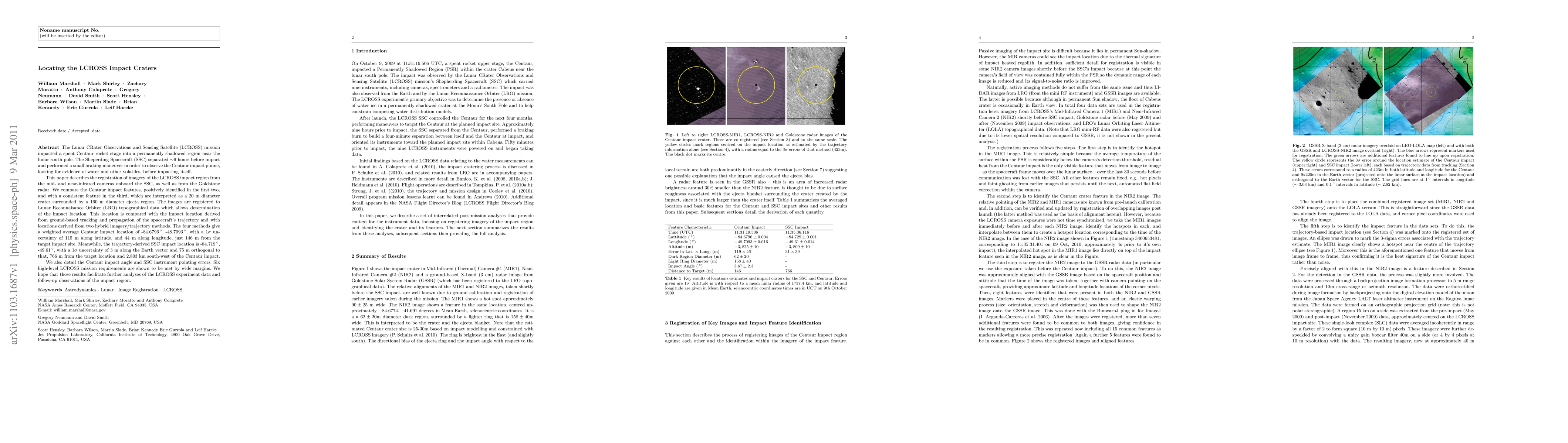 The LCROSS mission successfully impacted a Centaur rocket stage near the lunar south pole, creating a 20m crater surrounded by an ejecta region, with precise location determined to within 115m.