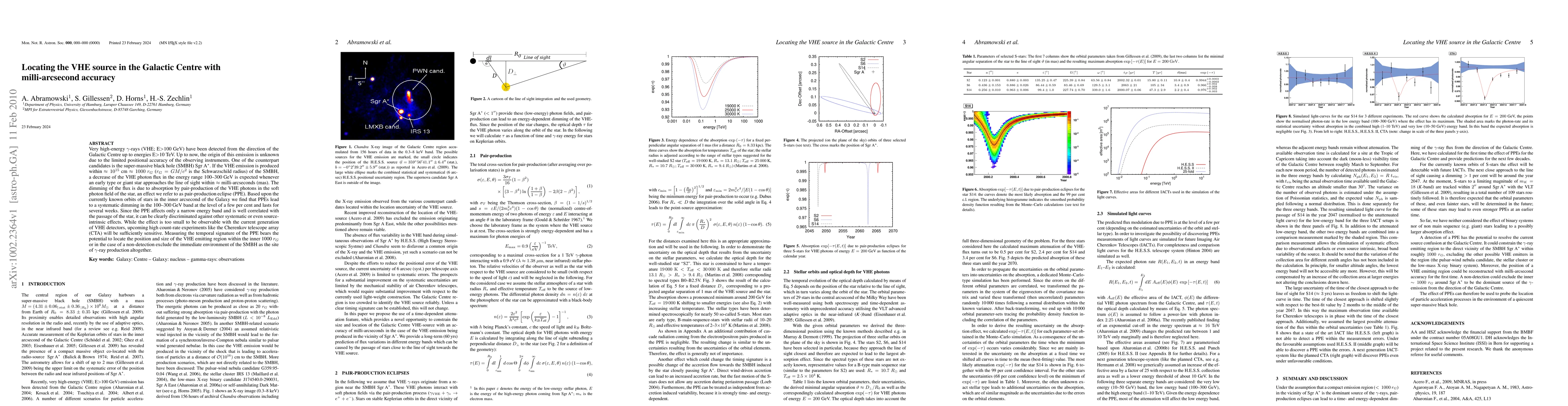Very high-energy gamma-rays (VHE; E>100 GeV) have been detected from the direction of the Galactic Centre up to energies E>10 TeV. Up to now, the origin of this emission is unknown due to the limited positional accuracy of the observing instruments. One of the counterpart candidates is the super-massive black hole (SMBH) Sgr A*. If the VHE emission is produced within ~10^{15} cm ~1000 r_G (r_G=G M/c^2 is the Schwarzschild radius) of the SMBH, a decrease of the VHE photon flux in the energy range 100--300 GeV is expected whenever an early type or giant star approaches the line of sight within ~ milli-arcseconds (mas). The dimming of the flux is due to absorption by pair-production of the VHE photons in the soft photon field of the star, an effect we refer to as pair-production eclipse (PPE). Based upon the currently known orbits of stars in the inner arcsecond of the Galaxy we find that PPEs lead to a systematic dimming in the 100--300 GeV band at the level of a few per cent and lasts for several weeks. Since the PPE affects only a narrow energy band and is well correlated with the passage of the star, it can be clearly discriminated against other systematic or even source-intrinsic effects. While the effect is too small to be observable with the current generation of VHE detectors, upcoming high count-rate experiments like the Cherenkov telescope array (CTA) will be sufficiently sensitive. Measuring the temporal signature of the PPE bears the potential to locate the position and size of the VHE emitting region within the inner 1000 r_G or in the case of a non-detection exclude the immediate environment of the SMBH as the site of gamma-ray production altogether.