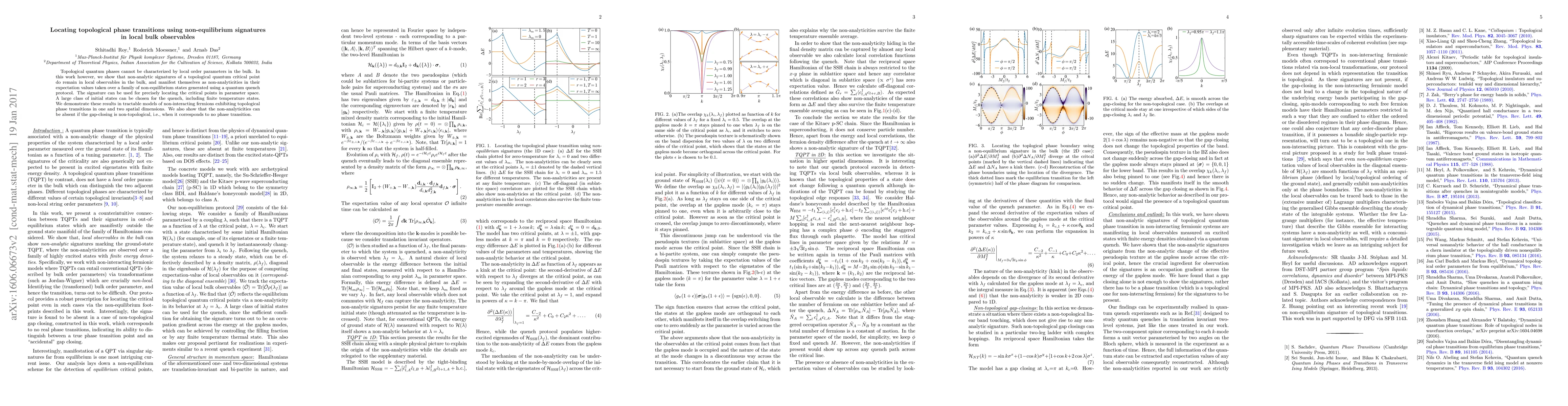 Researchers discovered that topological phase transitions can be detected in local bulk observables using nonequilibrium signatures, allowing for precise location of critical points in parameter space. This method uses a quantum quench protocol to generate non-equilibrium states and identify signature of phase transition.
