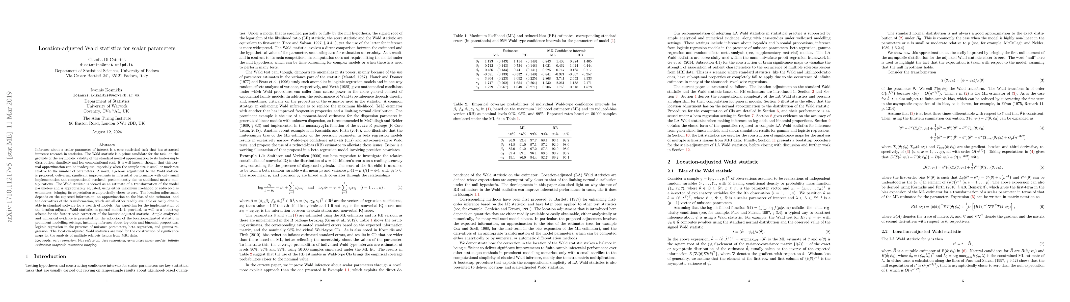 This paper proposes a novel algebraic adjustment to the Wald statistic to improve inference for scalar parameters, especially in small to moderate sample sizes. The location-adjusted Wald statistic, requiring minimal computational overhead, is shown to perform better analytically and numerically across various models, including logistic and beta regressions, and is applied to MRI data analysis.