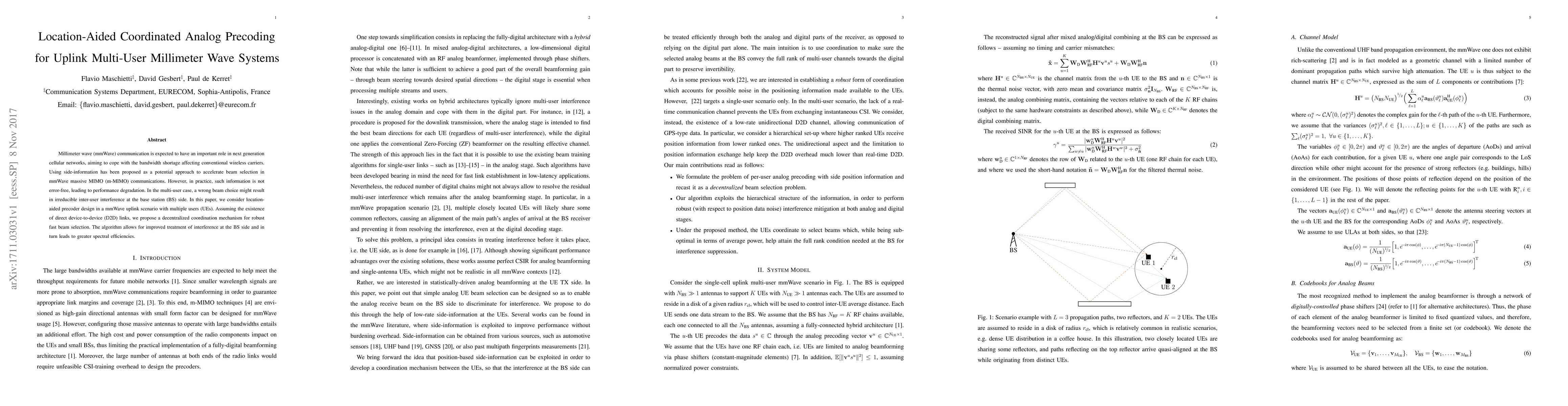 The paper presents a robust-coordinated beam selection algorithm that considers both the noise in location information and multi-user interference in the analog stage, leading to improved spectral efficiencies in uplink mmWave multi-user systems.