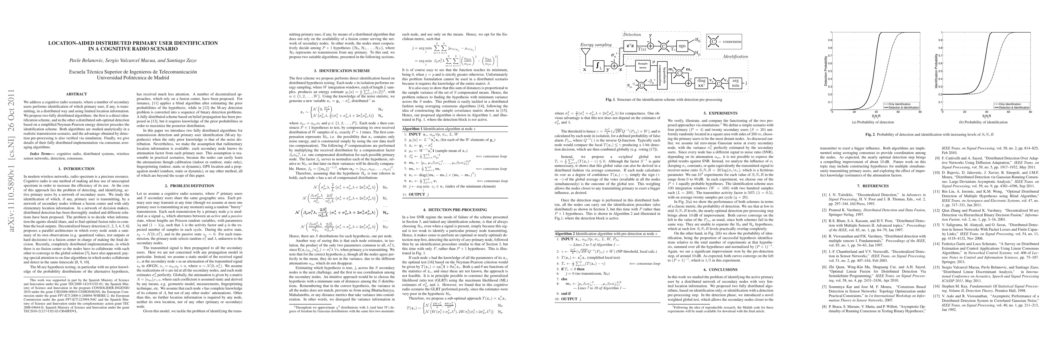 Researchers propose two algorithms for identifying primary users in a cognitive radio scenario using limited location information, with one algorithm improving accuracy through detection pre-processing.