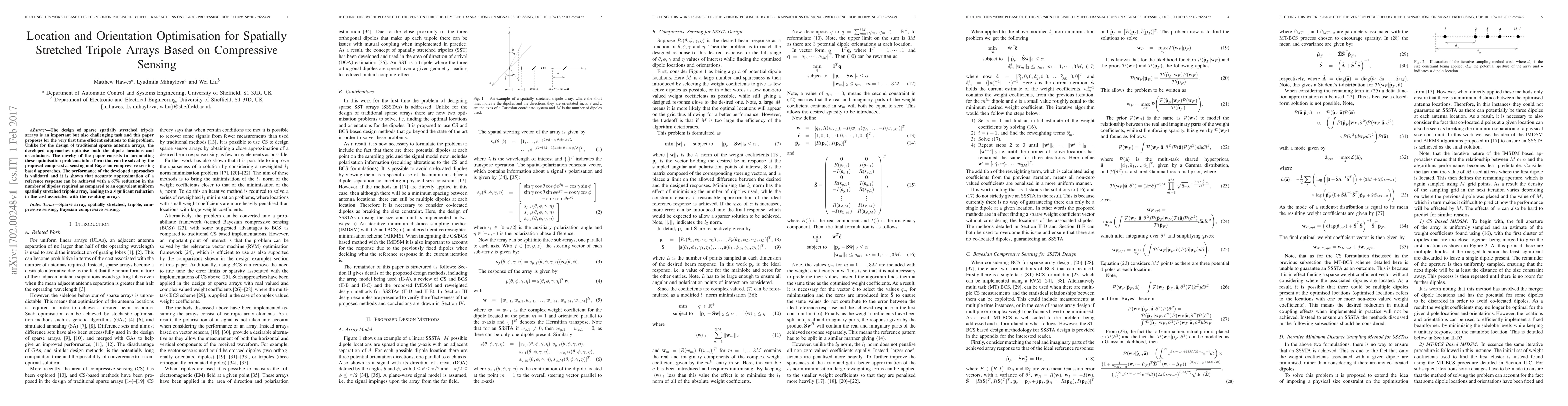 This paper proposes novel compressive sensing and Bayesian compressive sensing methods to optimize the location and orientation of spatially stretched tripole arrays, achieving a 67% reduction in the number of dipoles compared to traditional arrays, thus significantly lowering costs.
