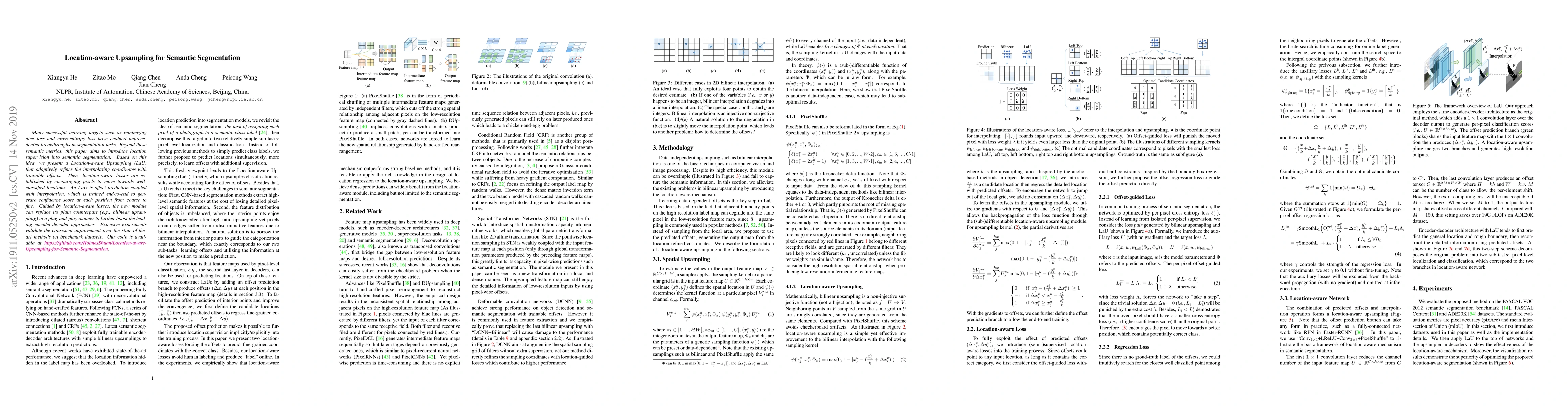This paper introduces Location-aware Upsampling (LaU) to enhance semantic segmentation by incorporating location supervision through adaptive refinement of interpolating coordinates with trainable offsets. The proposed method consistently outperforms state-of-the-art techniques on benchmark datasets.