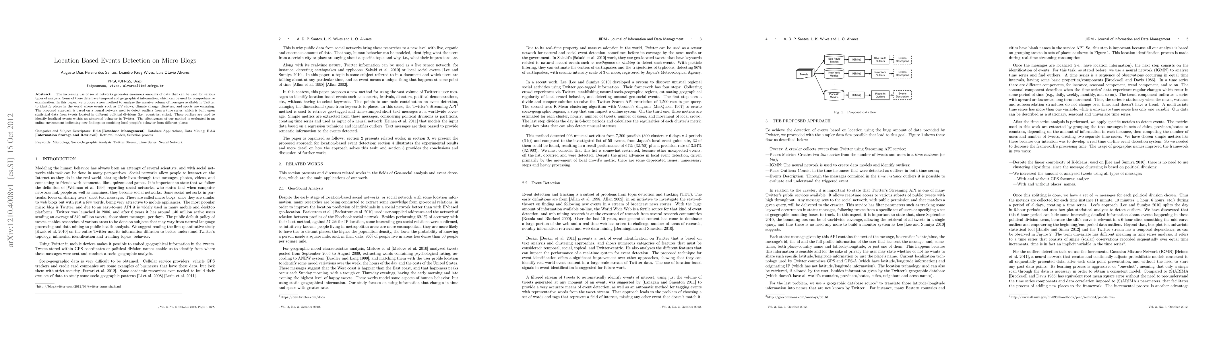 The increasing use of social networks generates enormous amounts of data that can be used for many types of analysis. Some of these data have temporal and geographical information, which can be used for comprehensive examination. In this paper, we propose a new method to analyze the massive volume of messages available in Twitter to identify places in the world where topics such as TV shows, climate change, disasters, and sports are emerging. The proposed method is based on a neural network that is used to detect outliers from a time series, which is built upon statistical data from tweets located on different political divisions (i.e., countries, cities). The outliers are used to identify topics within an abnormal behavior in Twitter. The effectiveness of our method is evaluated in an online environment indicating new findings on modeling local people's behavior from different places.