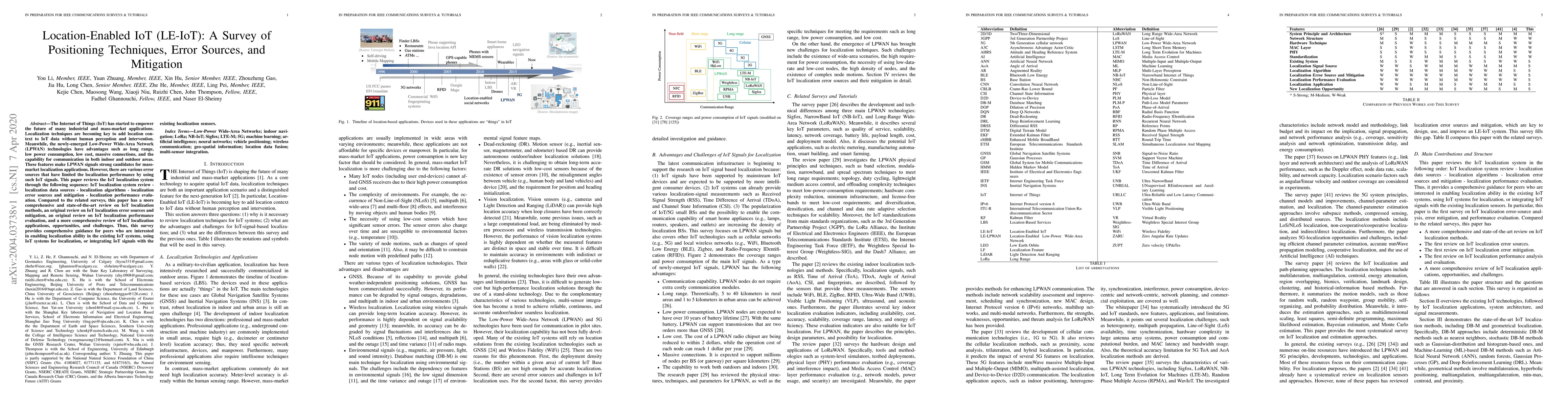 This paper provides a comprehensive survey on IoT localization techniques, reviewing positioning methods, error sources, and their mitigation strategies, alongside IoT localization applications and challenges. It offers detailed insights into the performance evaluation of localization systems and the integration of IoT signals with existing sensors.