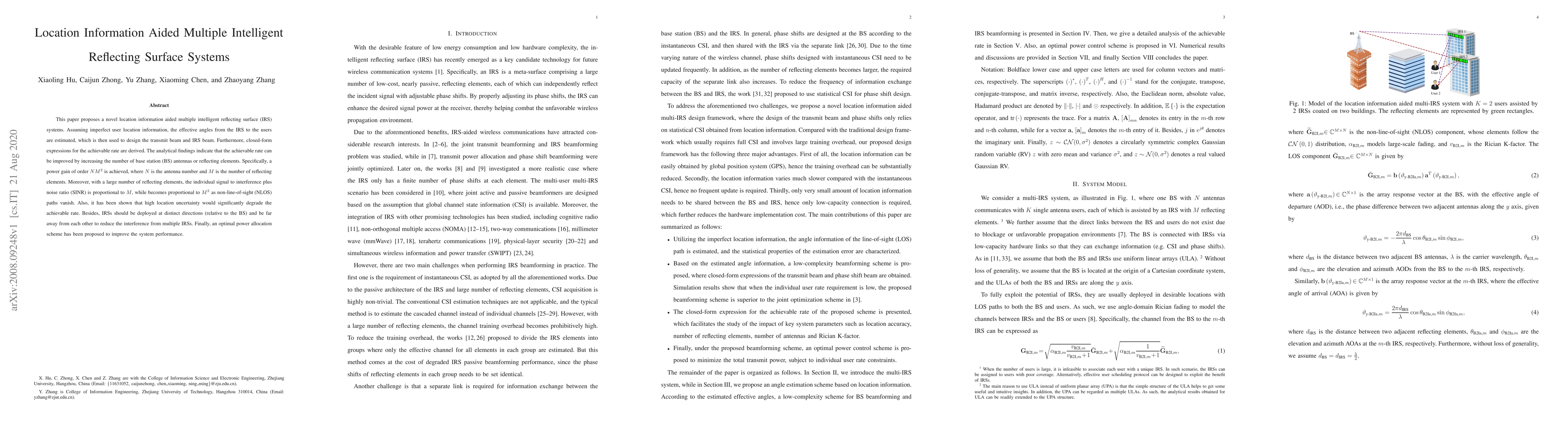 This paper proposes a novel location information aided multiple intelligent reflecting surface (IRS) systems. Assuming imperfect user location information, the effective angles from the IRS to the users are estimated, which is then used to design the transmit beam and IRS beam. Furthermore, closed-form expressions for the achievable rate are derived. The analytical findings indicate that the achievable rate can be improved by increasing the number of base station (BS) antennas or reflecting elements. Specifically, a power gain of order $N M^2$ is achieved, where $N$ is the antenna number and $M$ is the number of reflecting elements. Moreover, with a large number of reflecting elements, the individual signal to interference plus noise ratio (SINR) is proportional to $M$, while becomes proportional to $M^2$ as non-line-of-sight (NLOS) paths vanish. Also, it has been shown that high location uncertainty would significantly degrade the achievable rate. Besides, IRSs should be deployed at distinct directions (relative to the BS) and be far away from each other to reduce the interference from multiple IRSs. Finally, an optimal power allocation scheme has been proposed to improve the system performance.