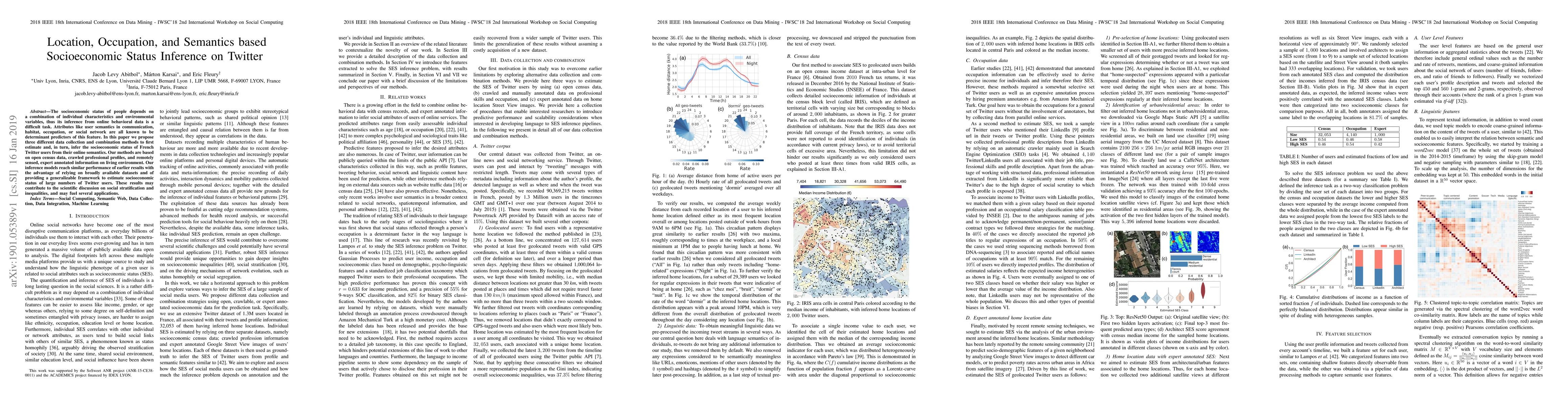 This paper proposes three methods for inferring the socioeconomic status of French Twitter users based on their online semantics, occupation, and living environment. The methods utilize open census data, professional profiles, and expert-annotated living environment information, achieving comparable performance to earlier studies while relying on widely available datasets.