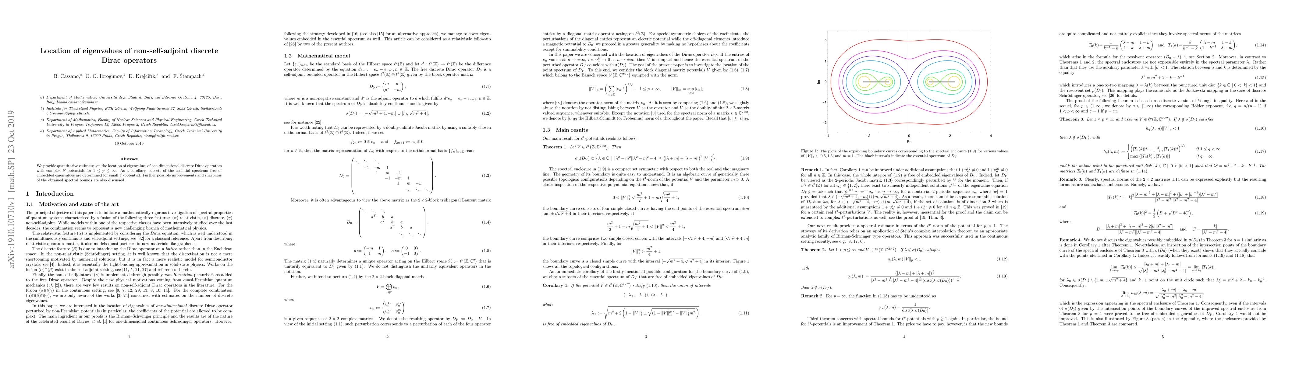 This paper quantitatively estimates the location of eigenvalues for one-dimensional discrete Dirac operators with complex $\ell^p$-potentials, determining subsets of the essential spectrum free of embedded eigenvalues for small $\ell^1$-potentials and discussing potential improvements and the sharpness of the spectral bounds.