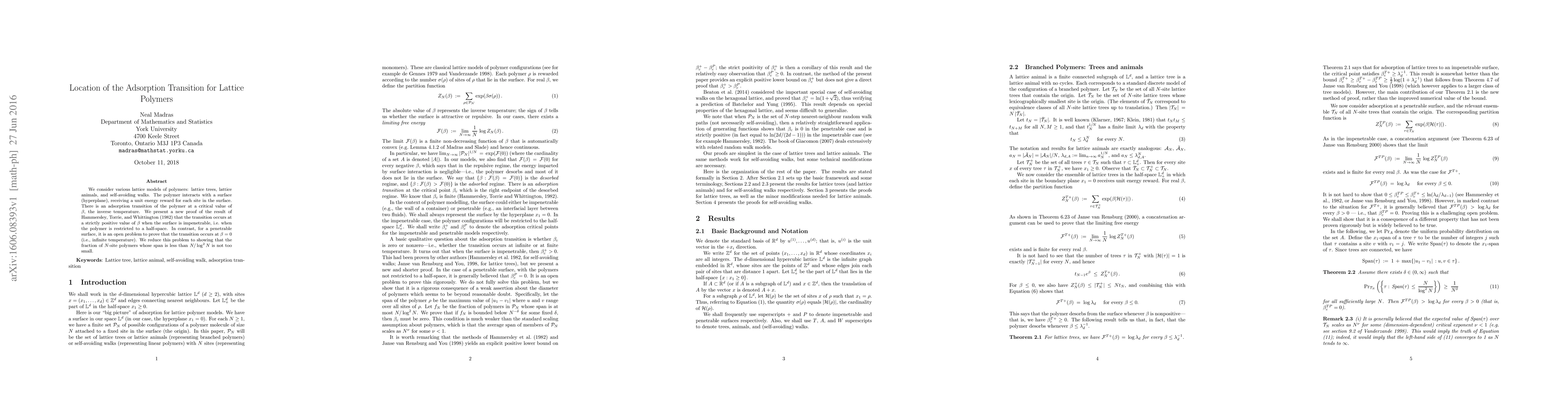 Researchers studied the behavior of lattice polymers on surfaces with different properties, finding an adsorption transition at a critical temperature; they also showed that for a penetrable surface, determining this transition is an open problem.