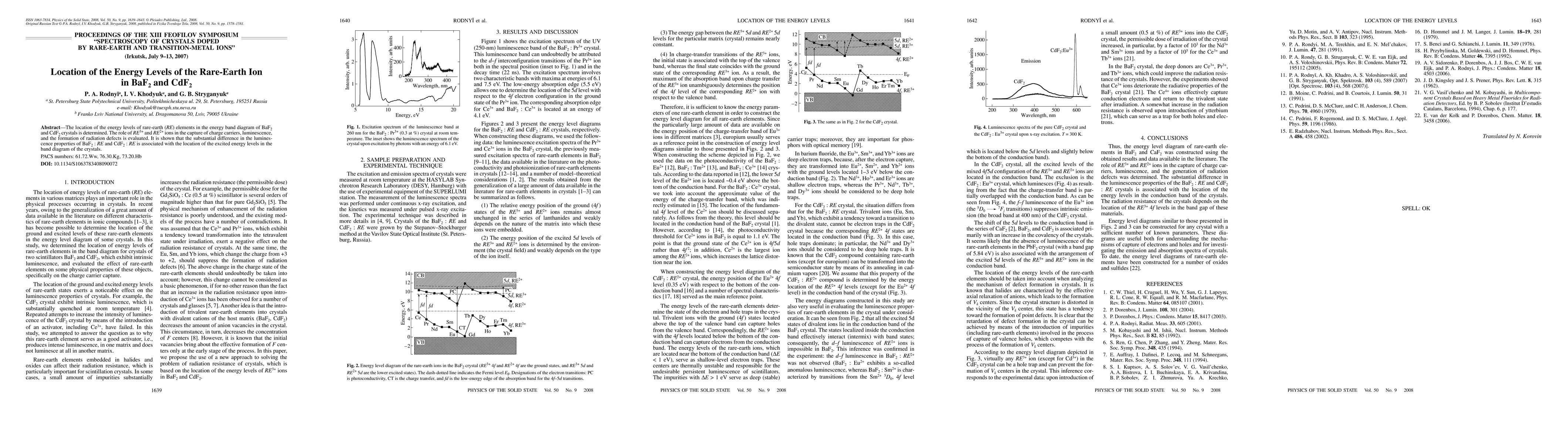 The location of the energy levels of rare-earth (RE) elements in the energy band diagram of BaF2 and CdF2 crystals is determined. The role of RE3+ and RE2+ ions in the capture of charge carriers, luminescence, and the formation of radiation defects is evaluated. It is shown that the substantial difference in the luminescence properties of BaF2:RE and CdF2:RE is associated with the location of the excited energy levels in the band diagram of the crystals.