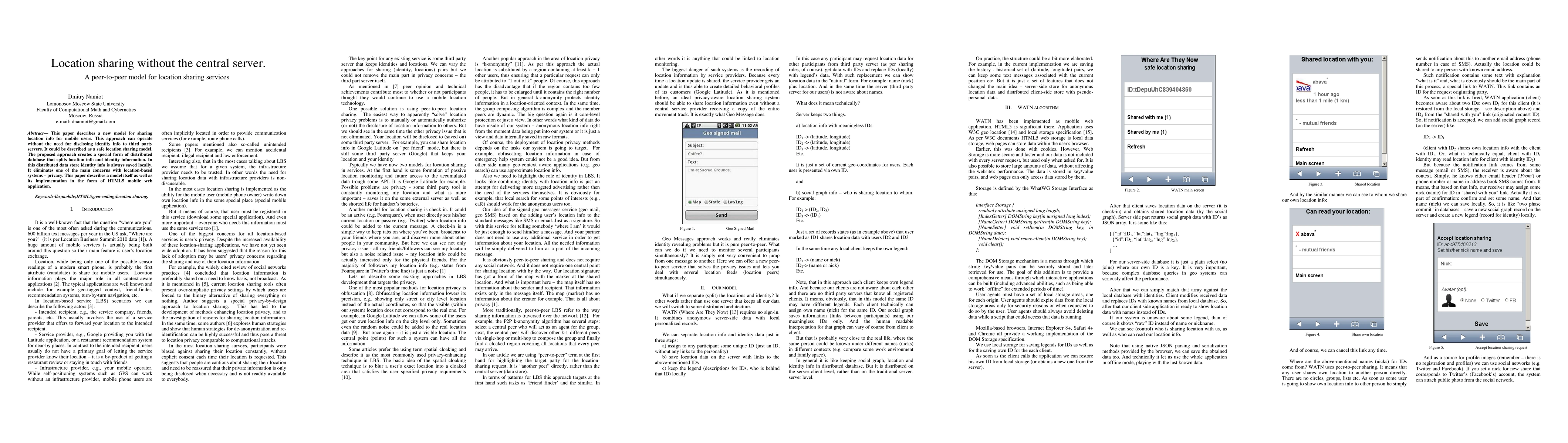 A new location sharing model is proposed that eliminates privacy concerns by storing identity info locally in a distributed database, allowing for secure sharing without third-party servers.
