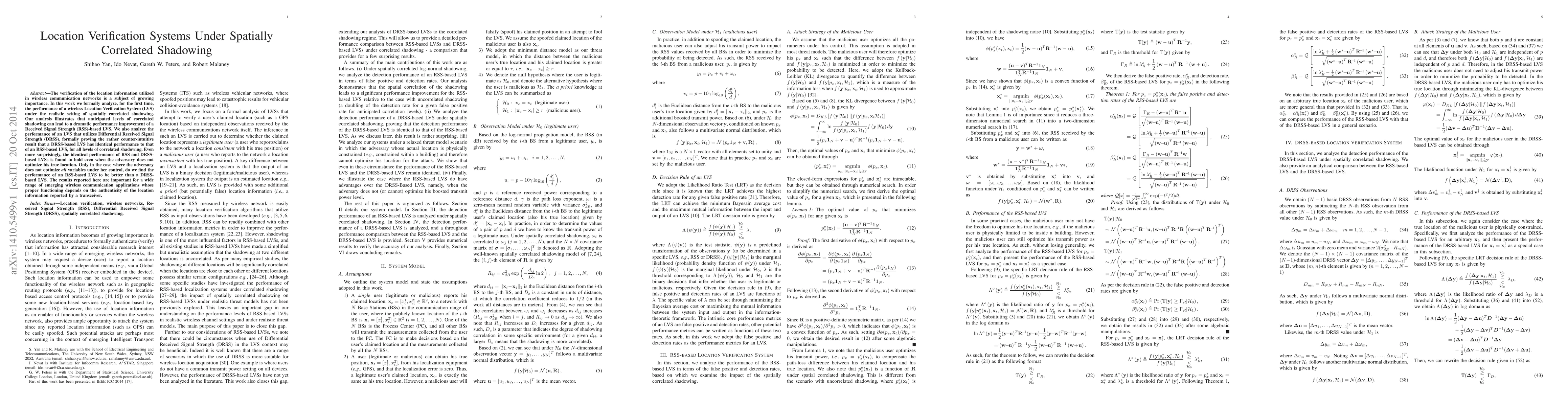 This paper analyzes the performance of wireless Location Verification Systems (LVS) under spatially correlated shadowing, finding that correlated shadowing can significantly improve the performance of RSS-based LVS. It also reveals that Differential RSS (DRSS)-based LVSs perform identically to RSS-based LVSs under all shadowing conditions, except when the adversary does not optimize all variables.